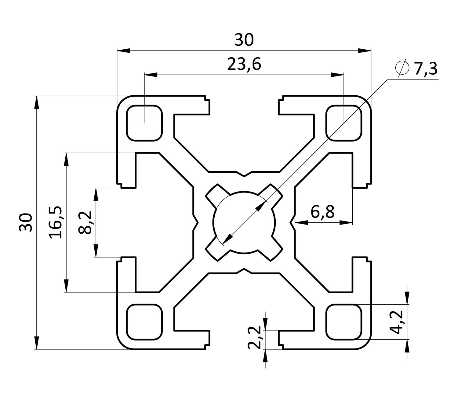 Алюминиевый конструкционный профиль 30x30B анодированный чёрныйАлюминиевый конструкционный профиль 30x30B анодированный чёрный