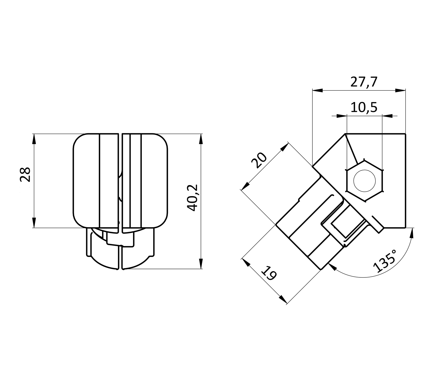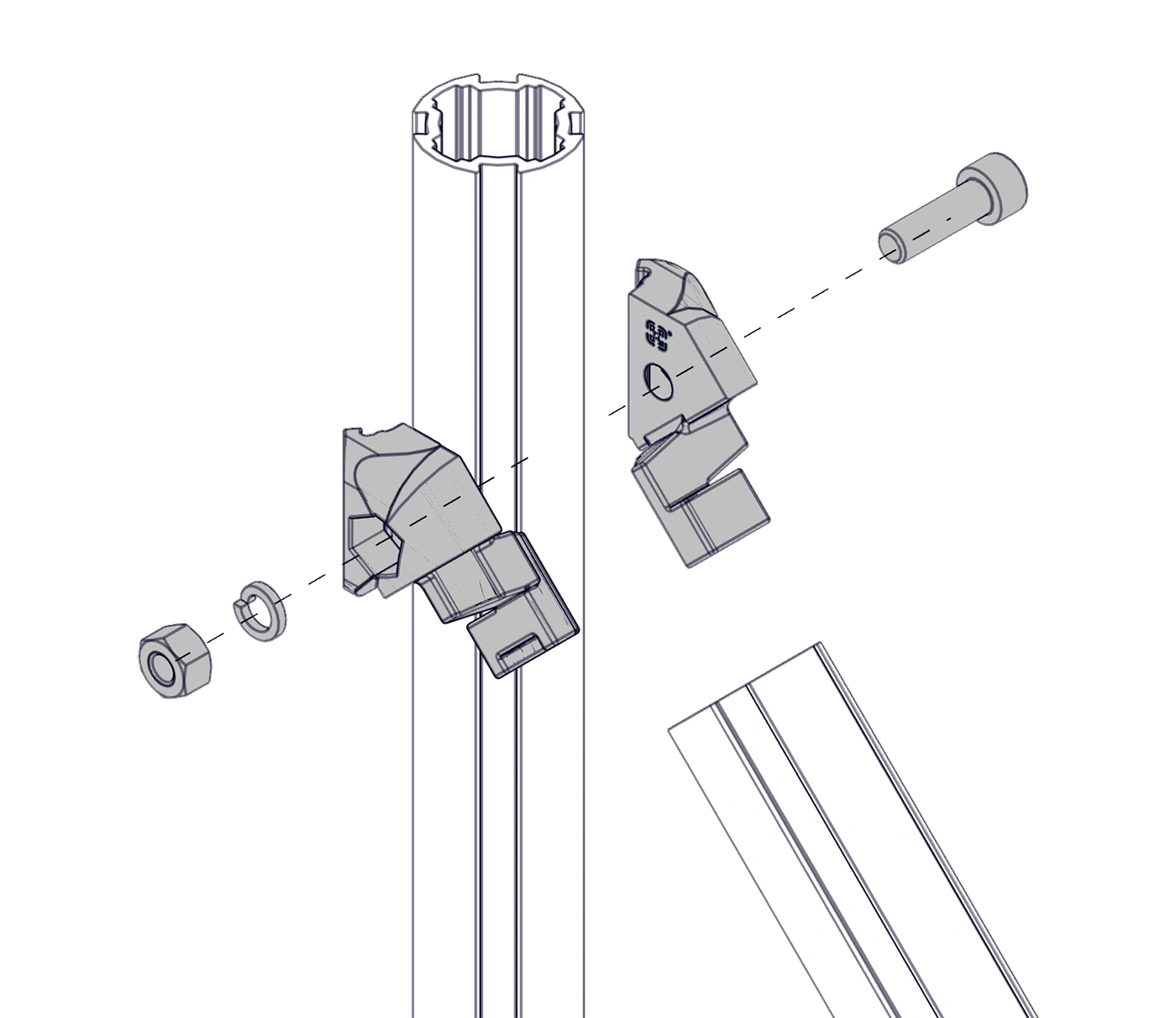 Соединитель внутренний предназначен для внутреннего соединения конструкционного трубного профиля D28 под углом 45 градусов