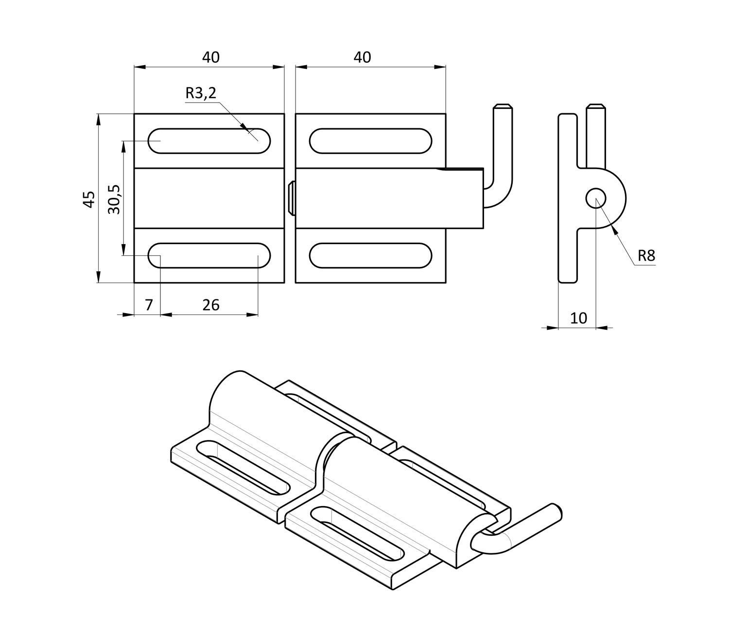 Защёлка дверная 40 ммЗащёлка дверная 40 мм