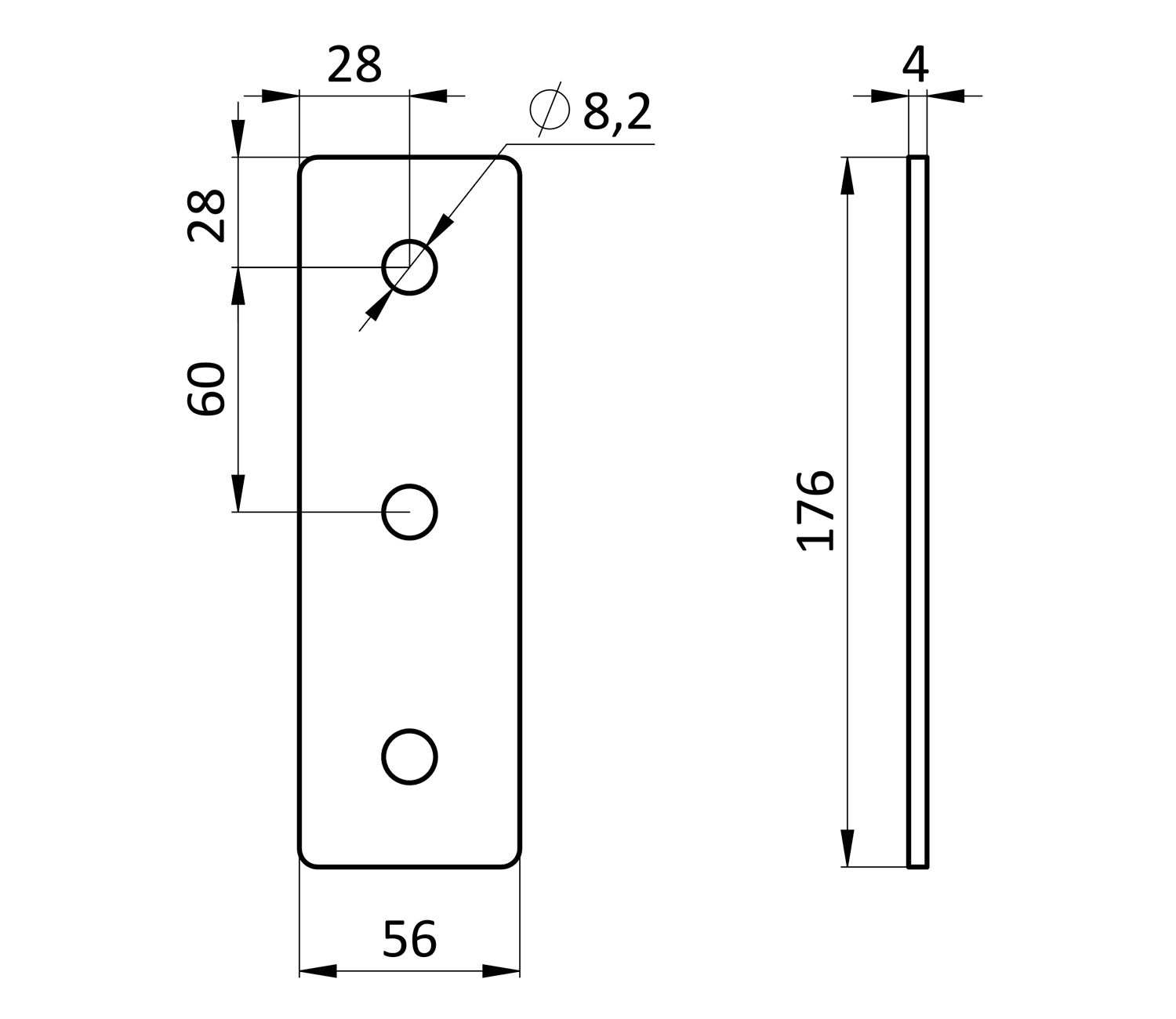 Cоединитель 60х180 стальной в виде пластины с тремя отверстиями предназначен для углового соединения конструкционного алюминиевого профиля 60 серии.