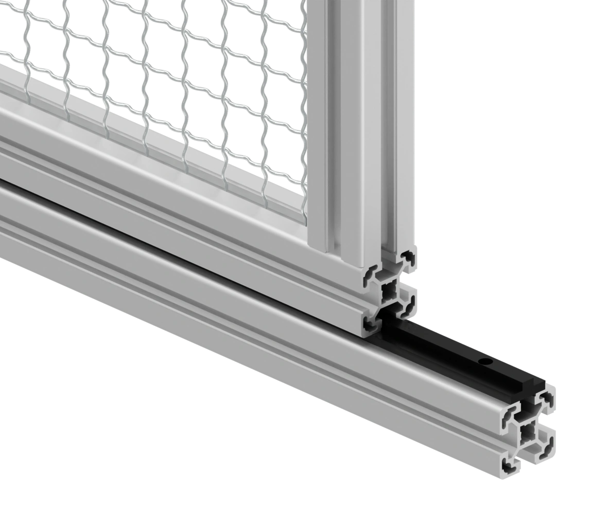 Служит нижней направляющей для откатной двери в раздвижной конструкции. Может быть установлен на профиль длиной более 1300 мм.