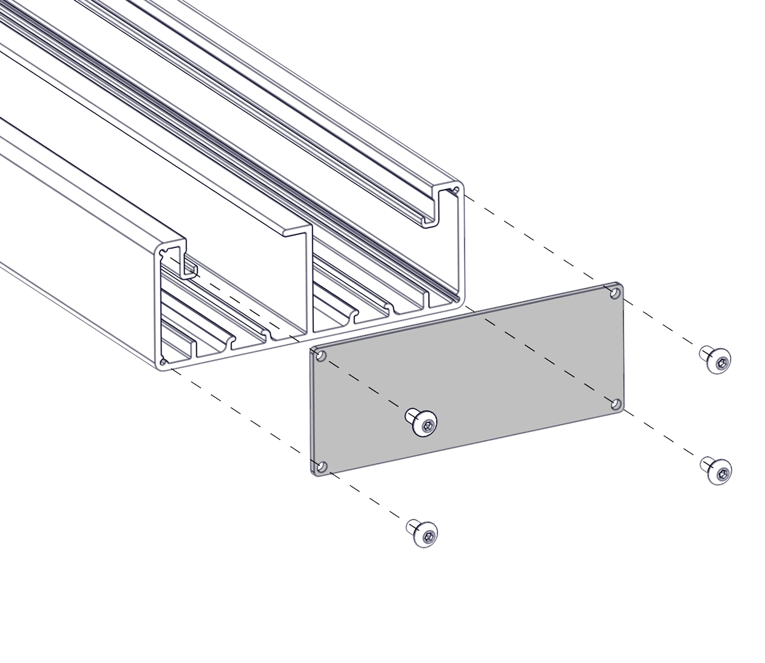 Устанавливается на винты DIN 7380 М4 с торца профиля кабель-канала. Винты в комплект не входят.
