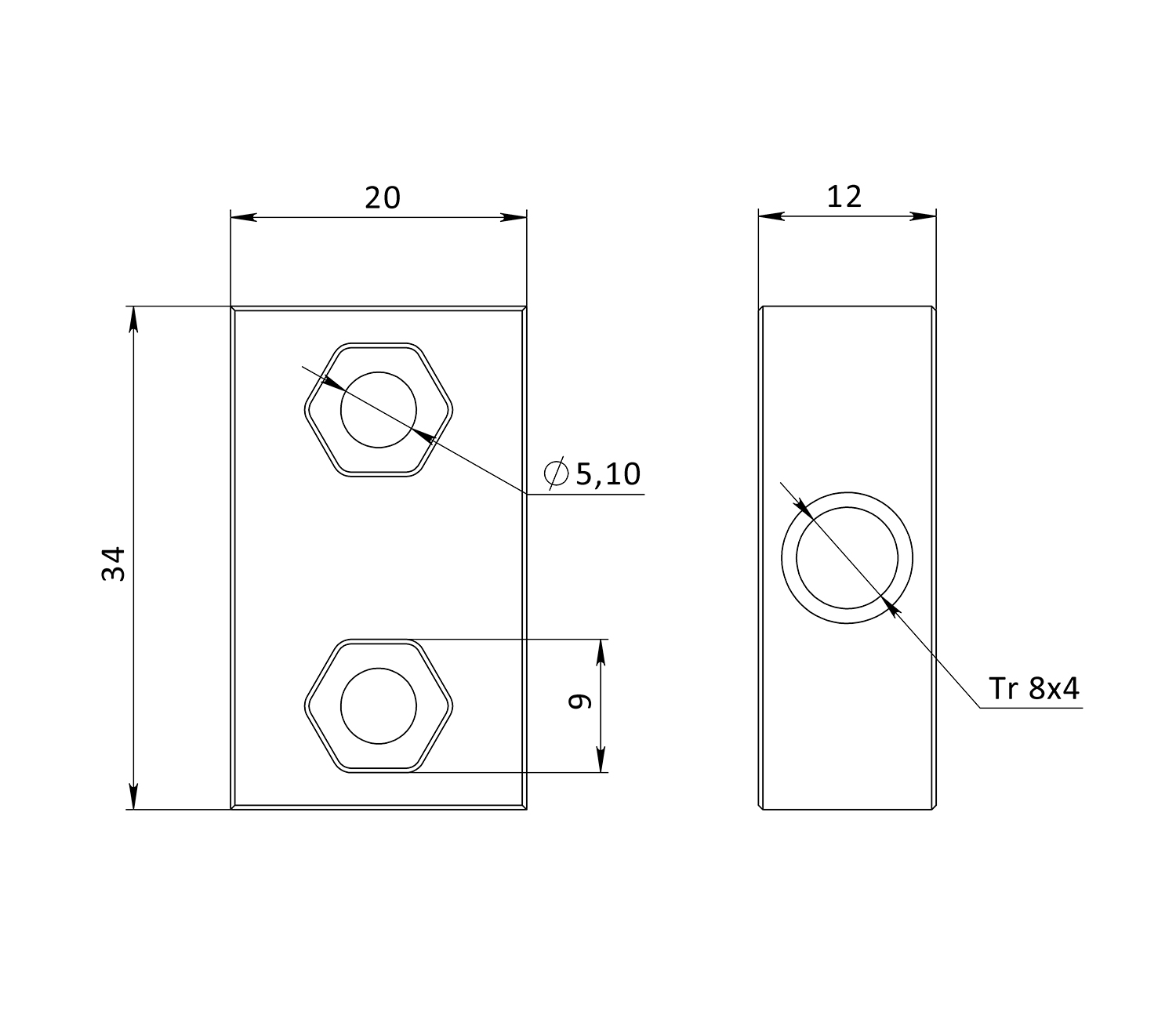 Ходовая гайка 20х34 тип 2 обеспечивает плавное и плавное движение трапецеидального винта по оси. Может устанавливаться на пластину или непосредственно в V-образный паз