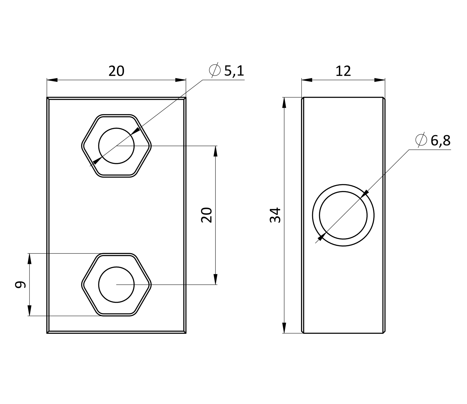 Ходовая гайка 20х34 обеспечивает плавное и плавное движение трапецеидального винта по оси. Может устанавливаться на пластину или непосредственно в V-образный паз