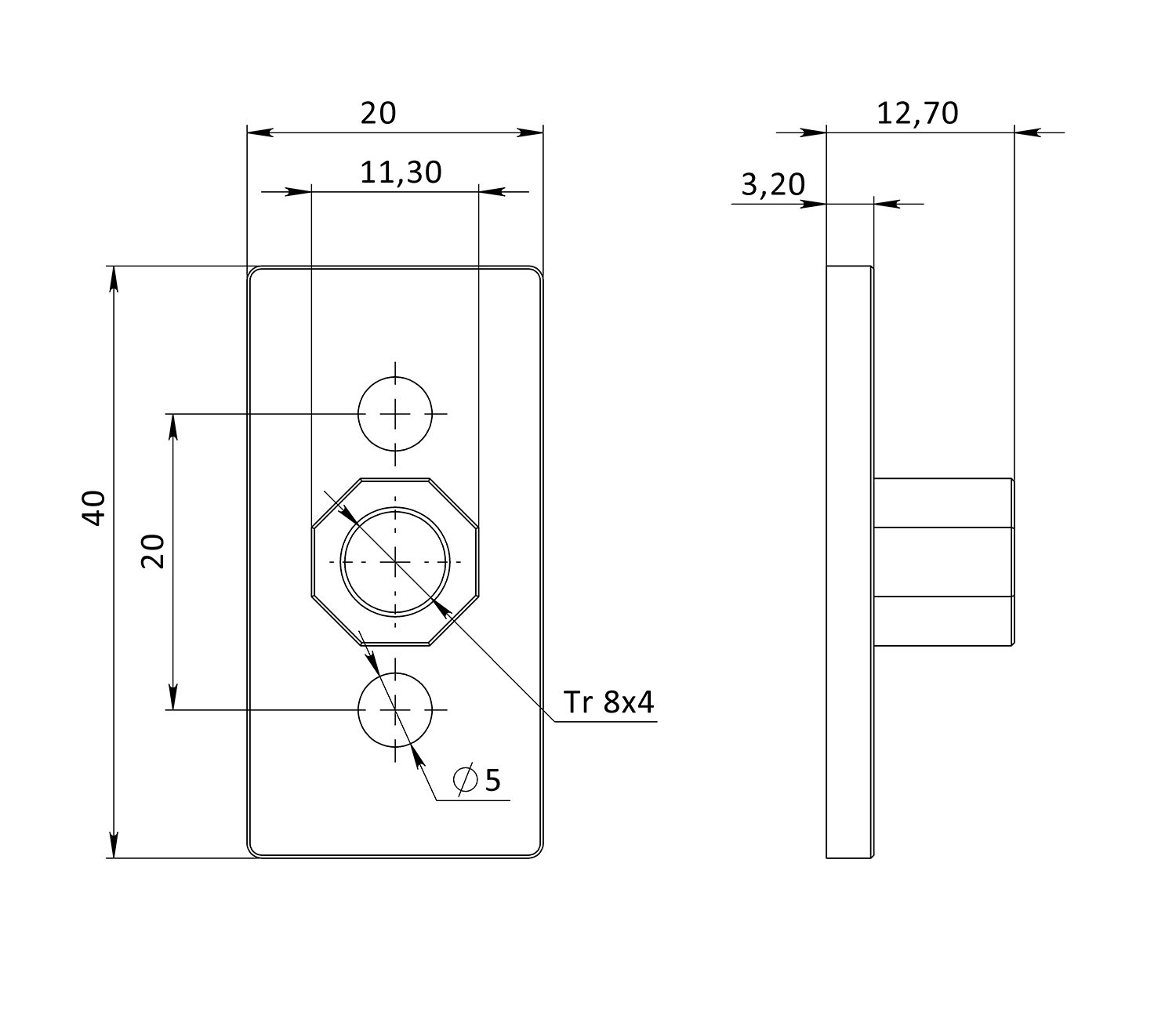 Ходовая гайка 20x40 для трапецеидального винта 8 мм Тип 2Ходовая гайка 20x40 для трапецеидального винта 8 мм Тип 2
