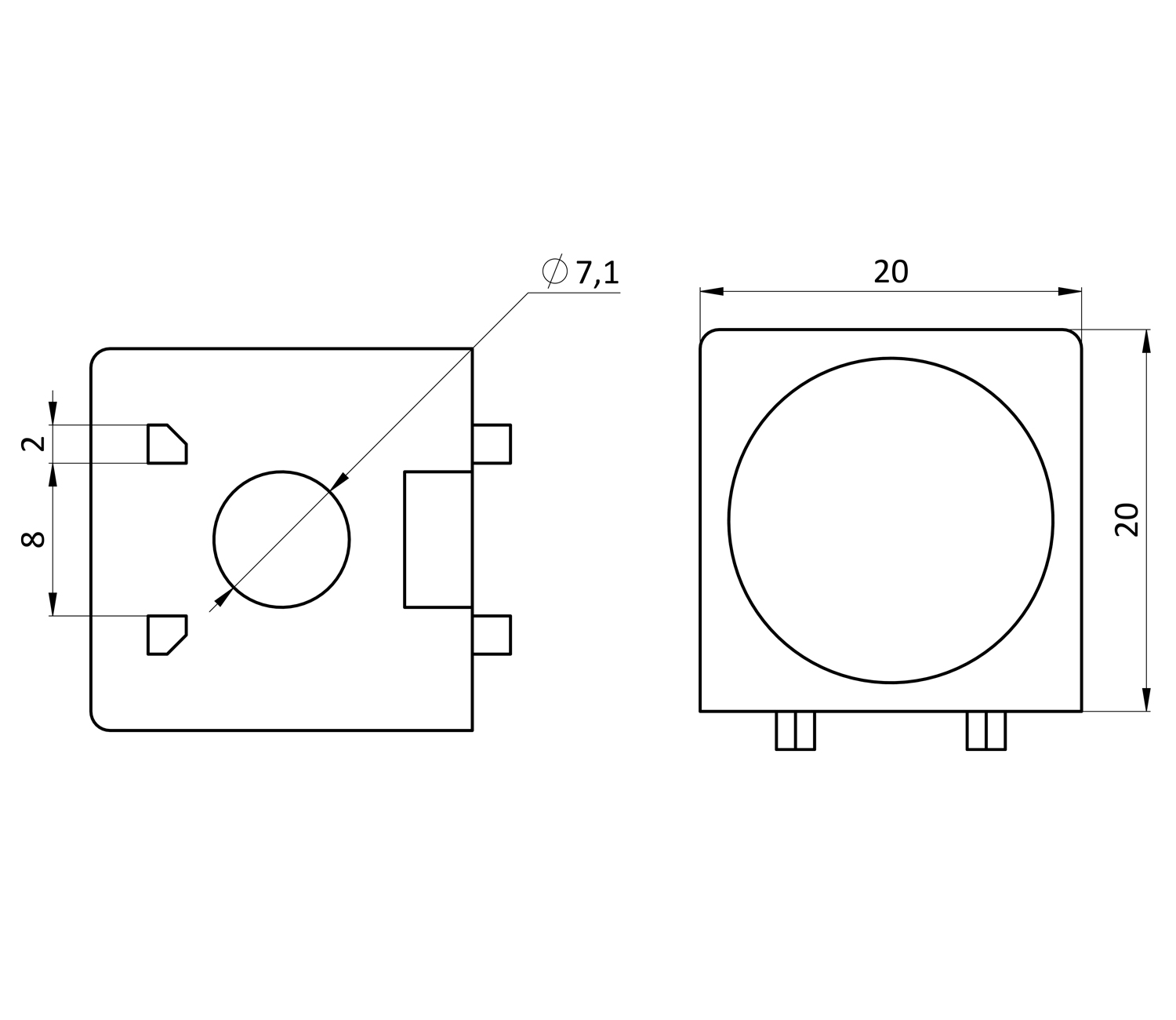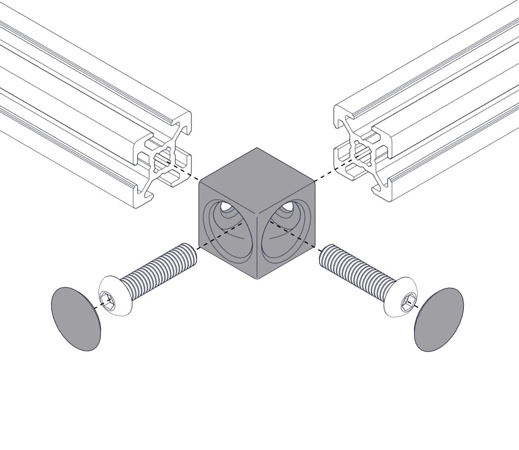 Кубический соединитель 2-х контактный используется совместно в системе конструкционного алюминиевого профиля для углового соединения двух отрезков профилей 20 серии сечением 20х20 мм. Соединитель имеет на нижней части выступы, которые фиксируют положение в пазу профиля при монтаже. Благодаря нейлоновым заглушкам, входящим в комплект место крепежа эстетично будет скрыто, а конструкция приобретет завершенный вид.