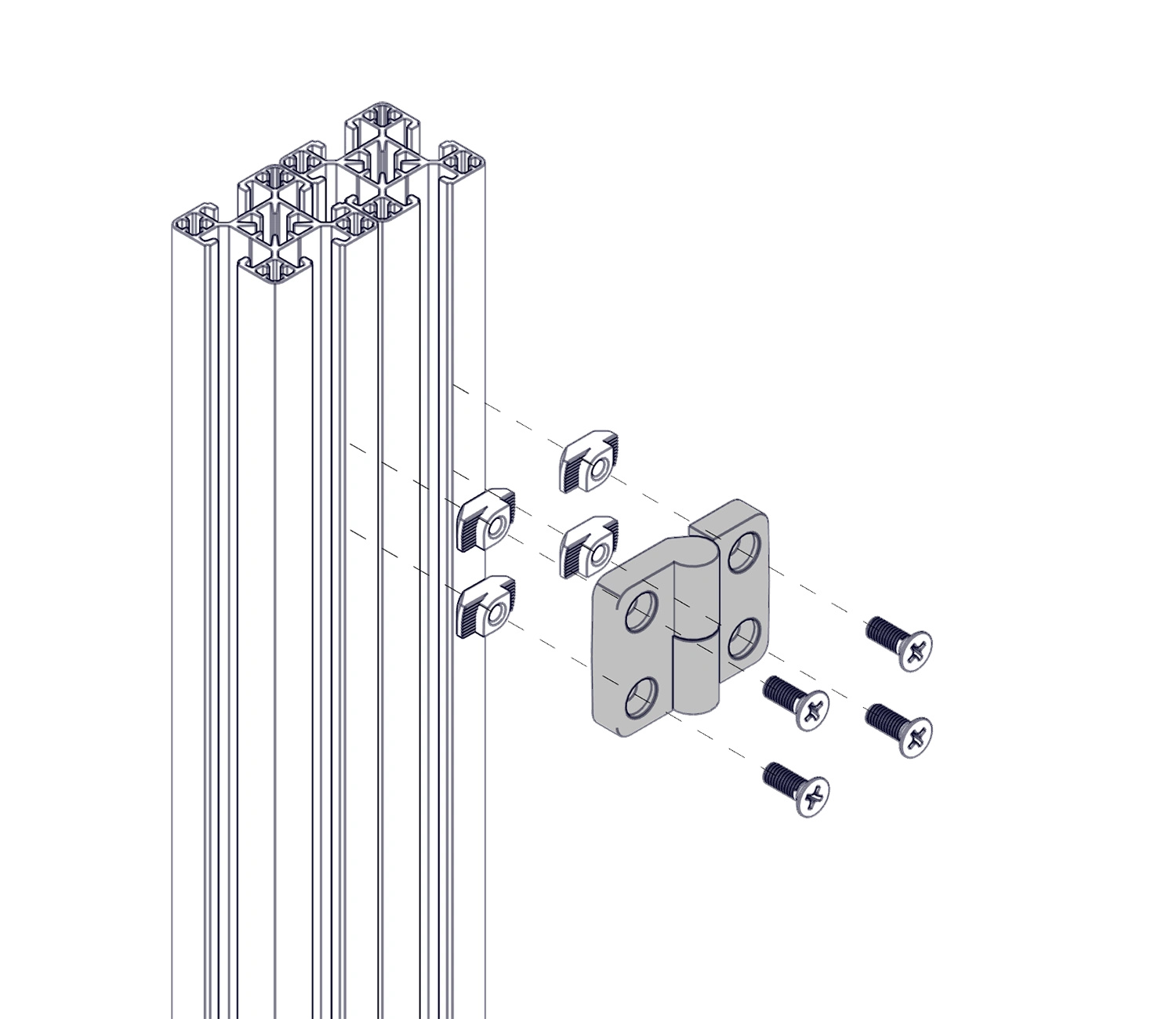 Дверная петля алюминиевая широко используется в модульных конструкциях из конструкционного алюминиевого профиля и предназначена для создания подвижных навесных элементов таких как двери, окна, технические лючки.