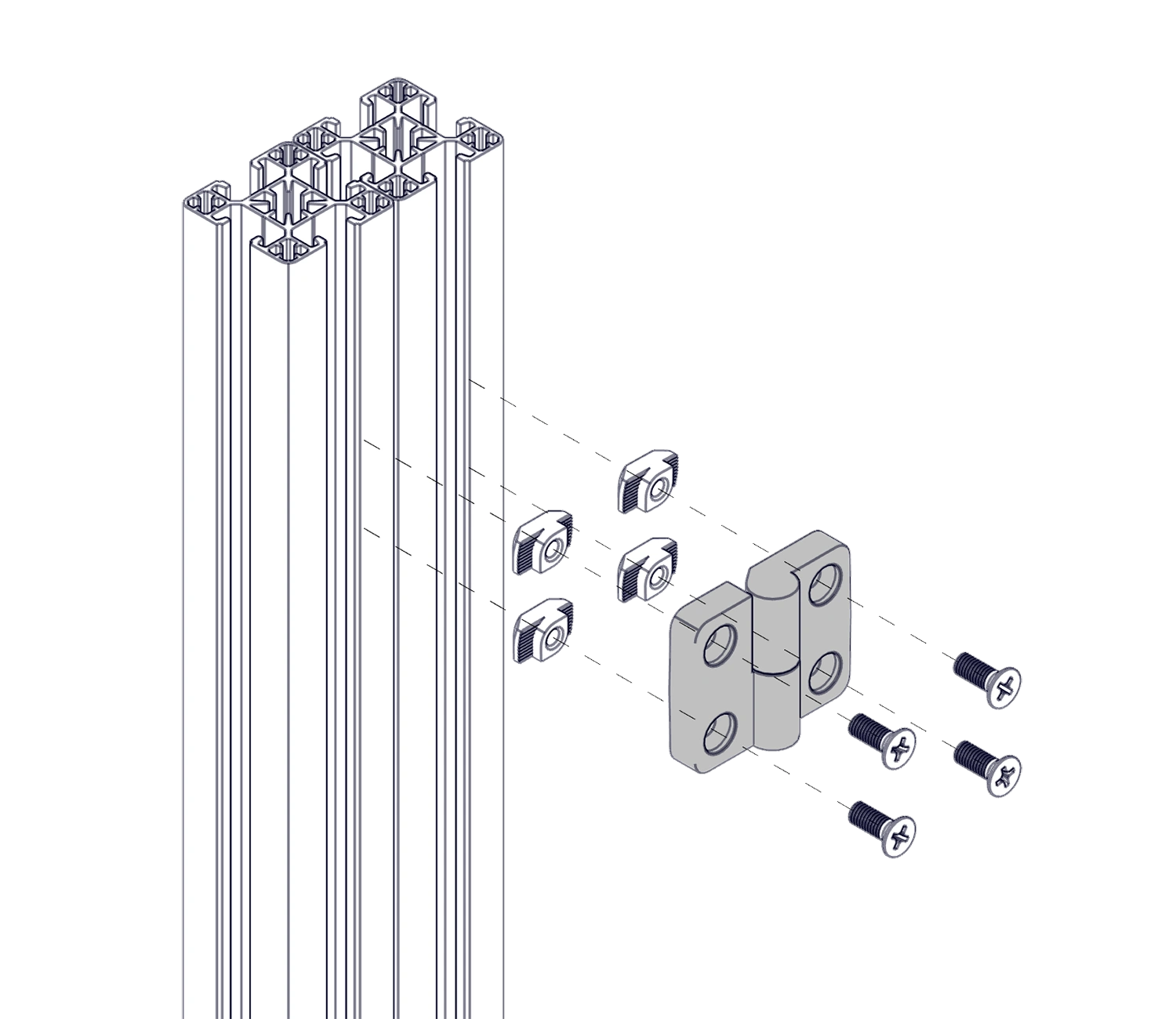 Дверная петля алюминиевая широко используется в модульных конструкциях из конструкционного алюминиевого профиля и предназначена для создания подвижных навесных элементов таких как двери, окна, технические лючки.
