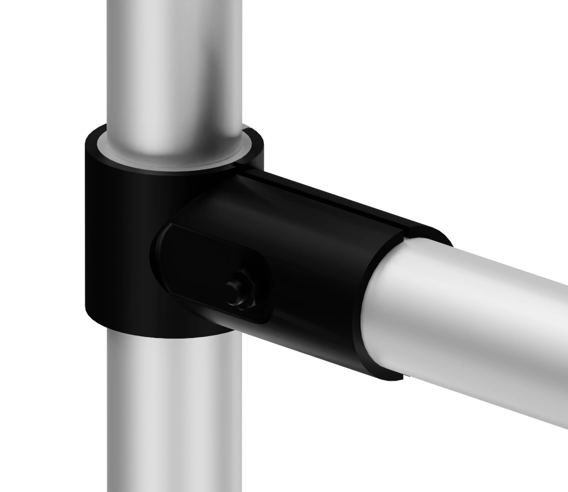 Используется совместно с алюминиевым трубным профилем D 28 мм в модульной трубной системе, которая представляет собой набор соединителей, роликовых направляющих (рольгангов) и других вспомогательных компонентов, позволяющих быстро изготовить специальные виды стационарного и мобильного оборудования и приспособлений, применимых на складе, сборочном производстве, таких как гравитационные стеллажи, тележки, рабочие столы и станции с возможностью их быстрой настройки, модификации.