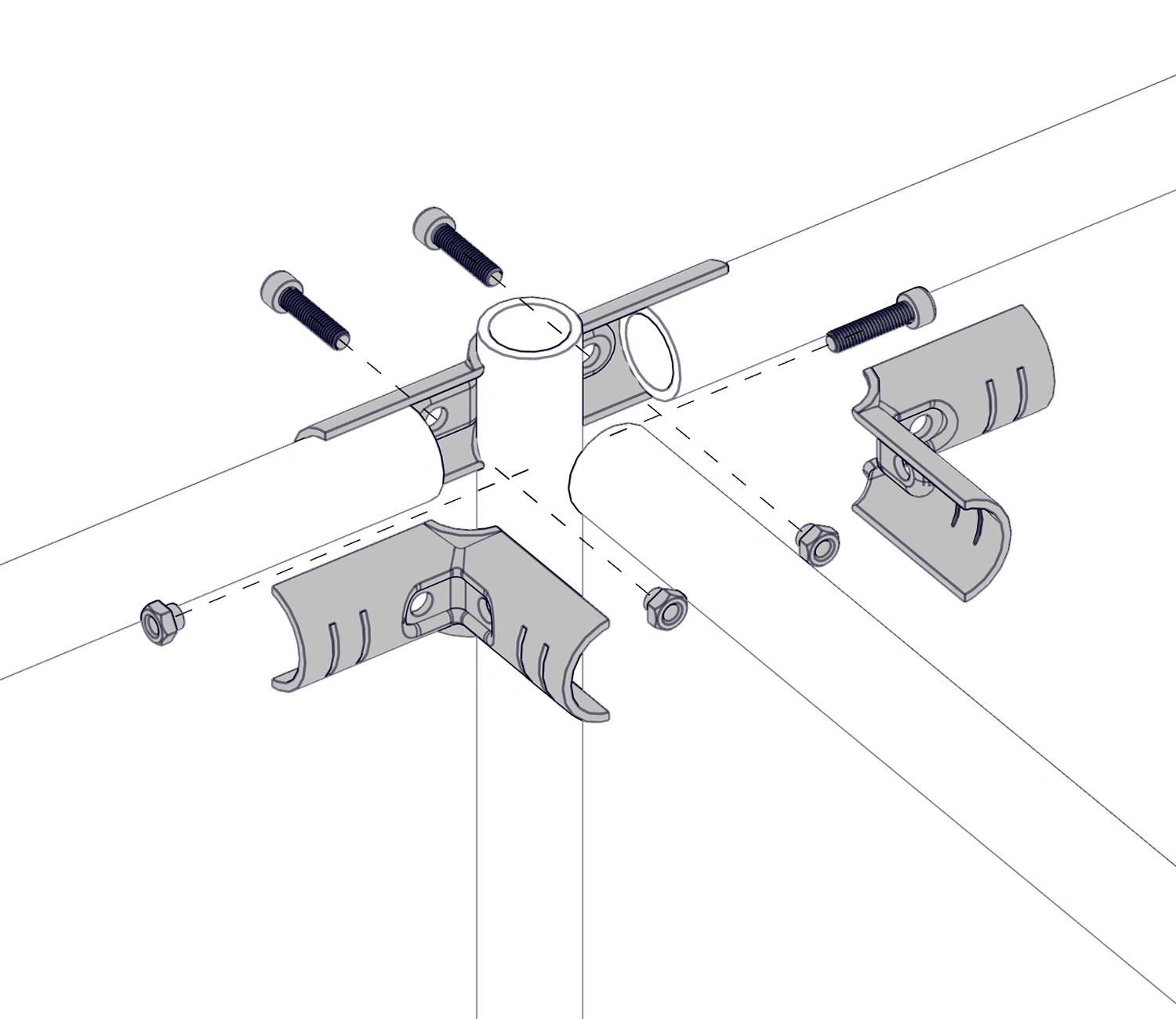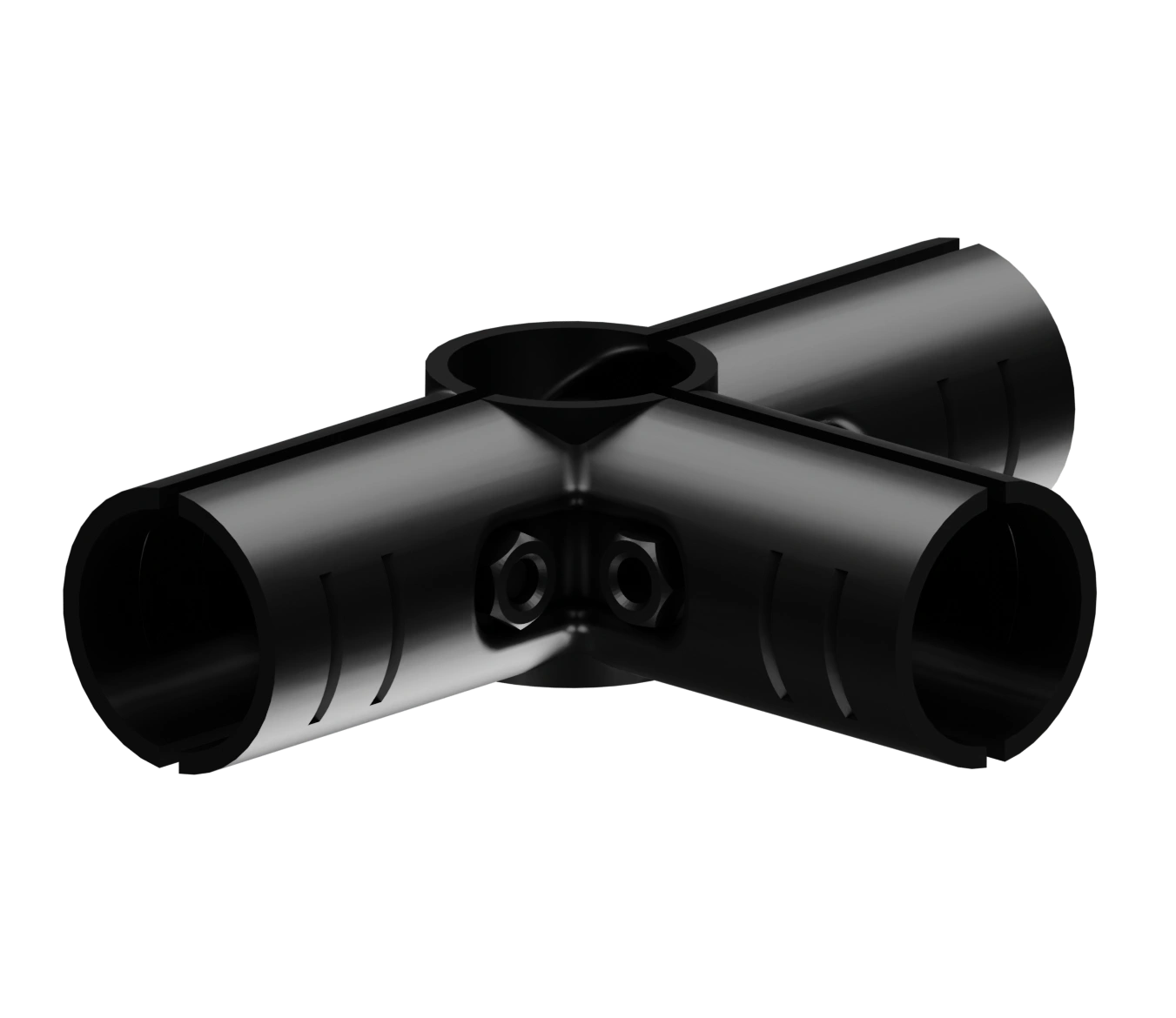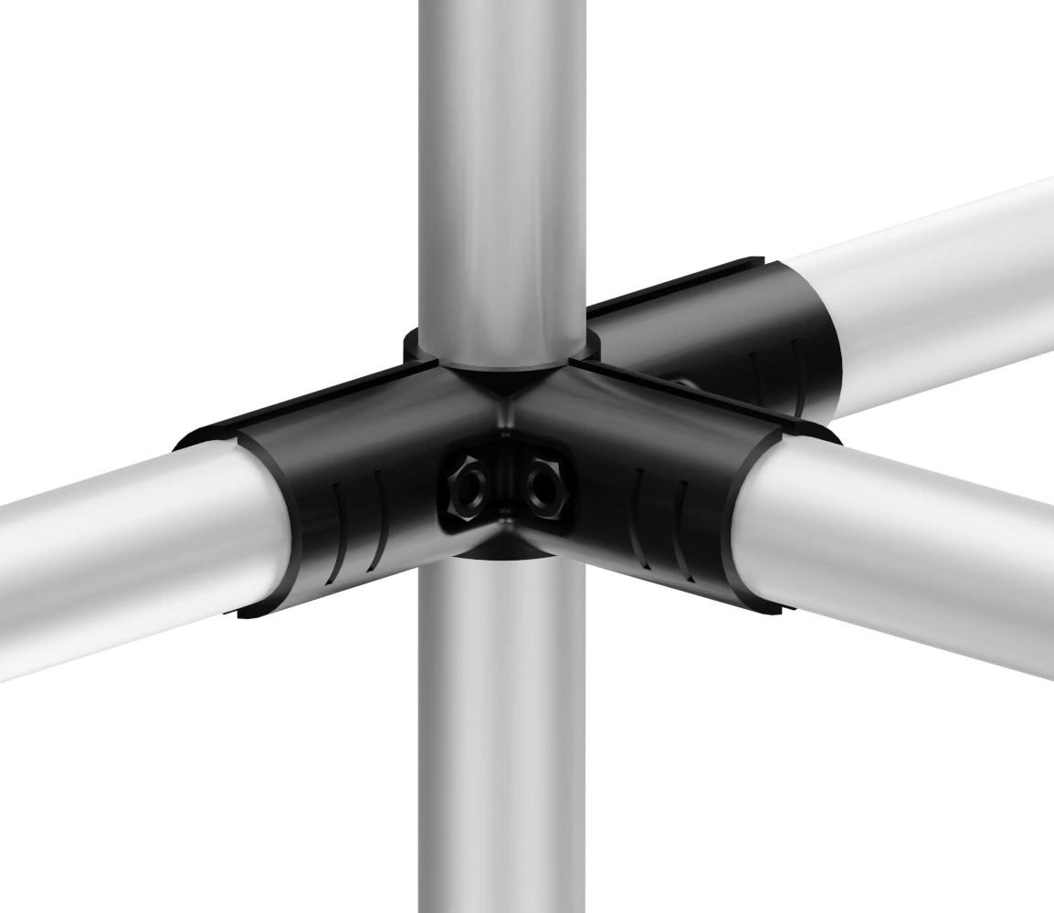 Используется совместно с алюминиевым трубным профилем D 28 мм в модульной трубной системе, которая представляет собой набор соединителей, роликовых направляющих (рольгангов) и других вспомогательных компонентов, позволяющих быстро изготовить специальные виды стационарного и мобильного оборудования и приспособлений, применимых на складе, сборочном производстве, таких как гравитационные стеллажи, тележки, рабочие столы и станции с возможностью их быстрой настройки, модификации.