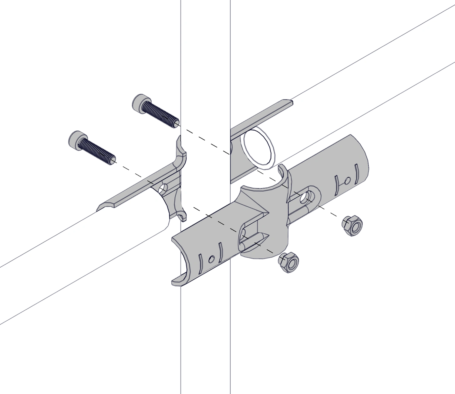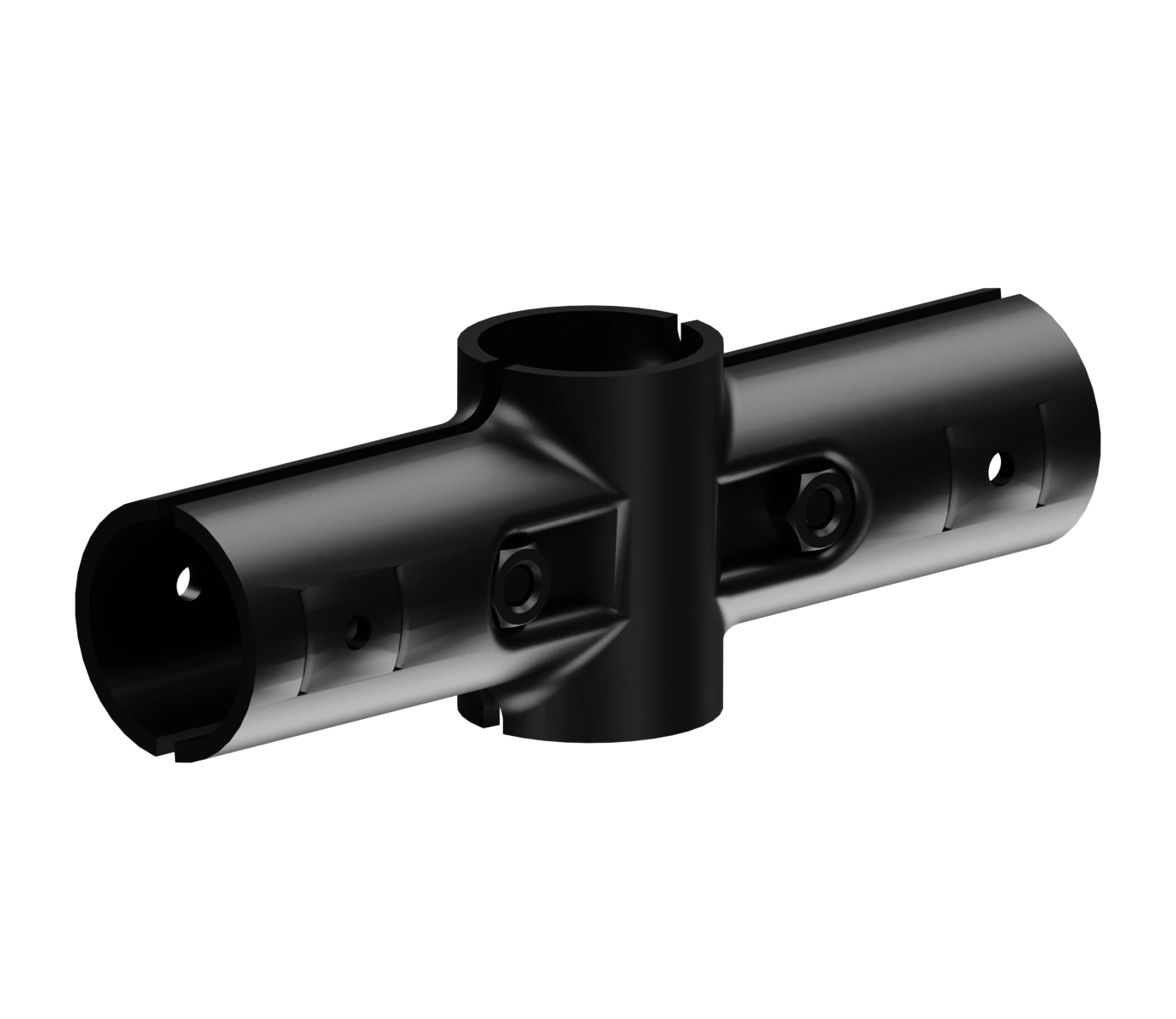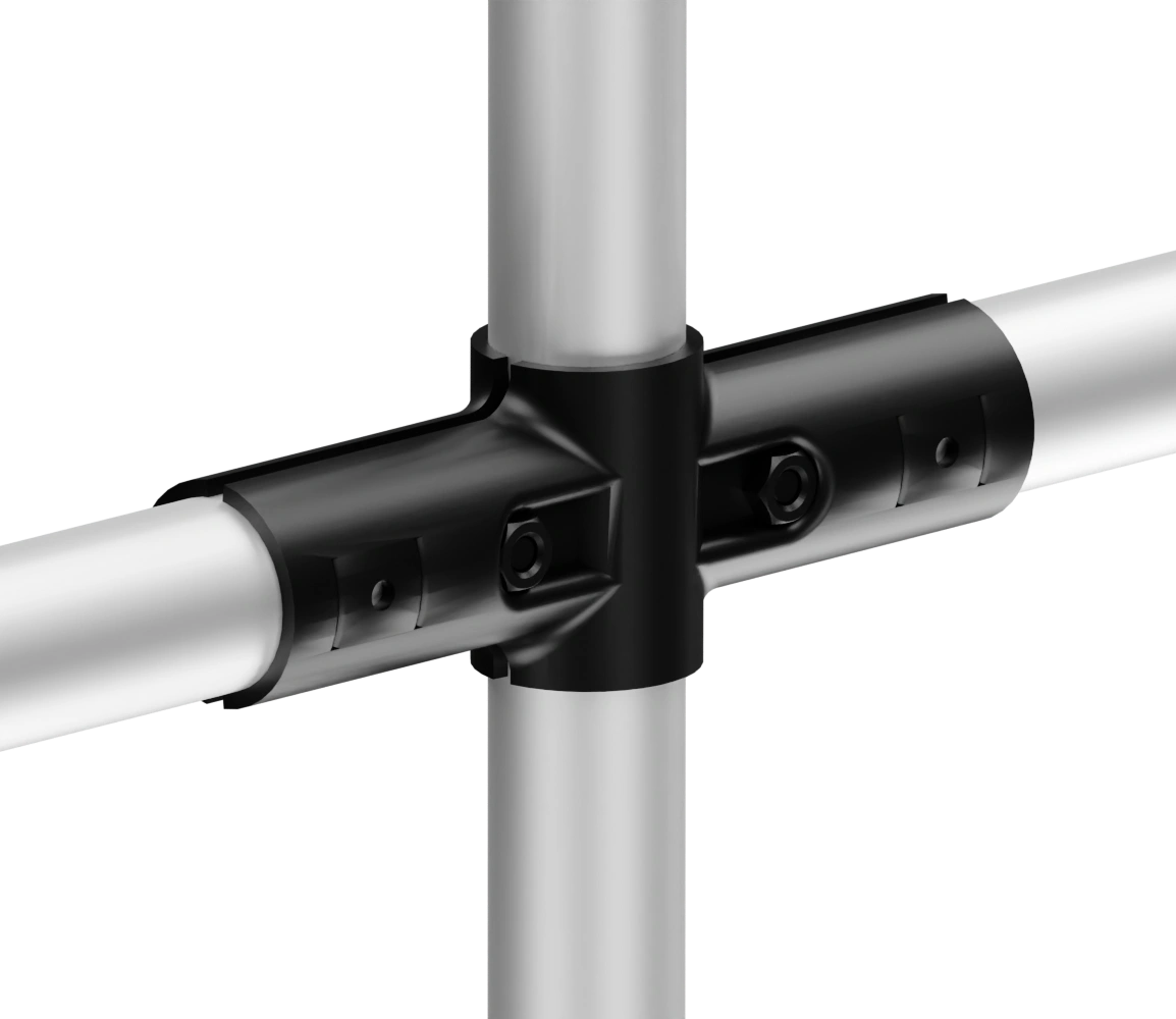 Используется совместно с алюминиевым трубным профилем D 28 мм в модульной трубной системе, которая представляет собой набор соединителей, роликовых направляющих (рольгангов) и других вспомогательных компонентов, позволяющих быстро изготовить специальные виды стационарного и мобильного оборудования и приспособлений, применимых на складе, сборочном производстве, таких как гравитационные стеллажи, тележки, рабочие столы и станции с возможностью их быстрой настройки, модификации.