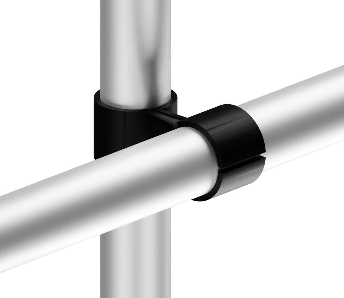 Используется совместно с алюминиевым трубным профилем D 28 мм в модульной трубной системе, которая представляет собой набор соединителей, роликовых направляющих (рольгангов) и других вспомогательных компонентов, позволяющих быстро изготовить специальные виды стационарного и мобильного оборудования и приспособлений, применимых на складе, сборочном производстве, таких как гравитационные стеллажи, тележки, рабочие столы и станции с возможностью их быстрой настройки, модификации.