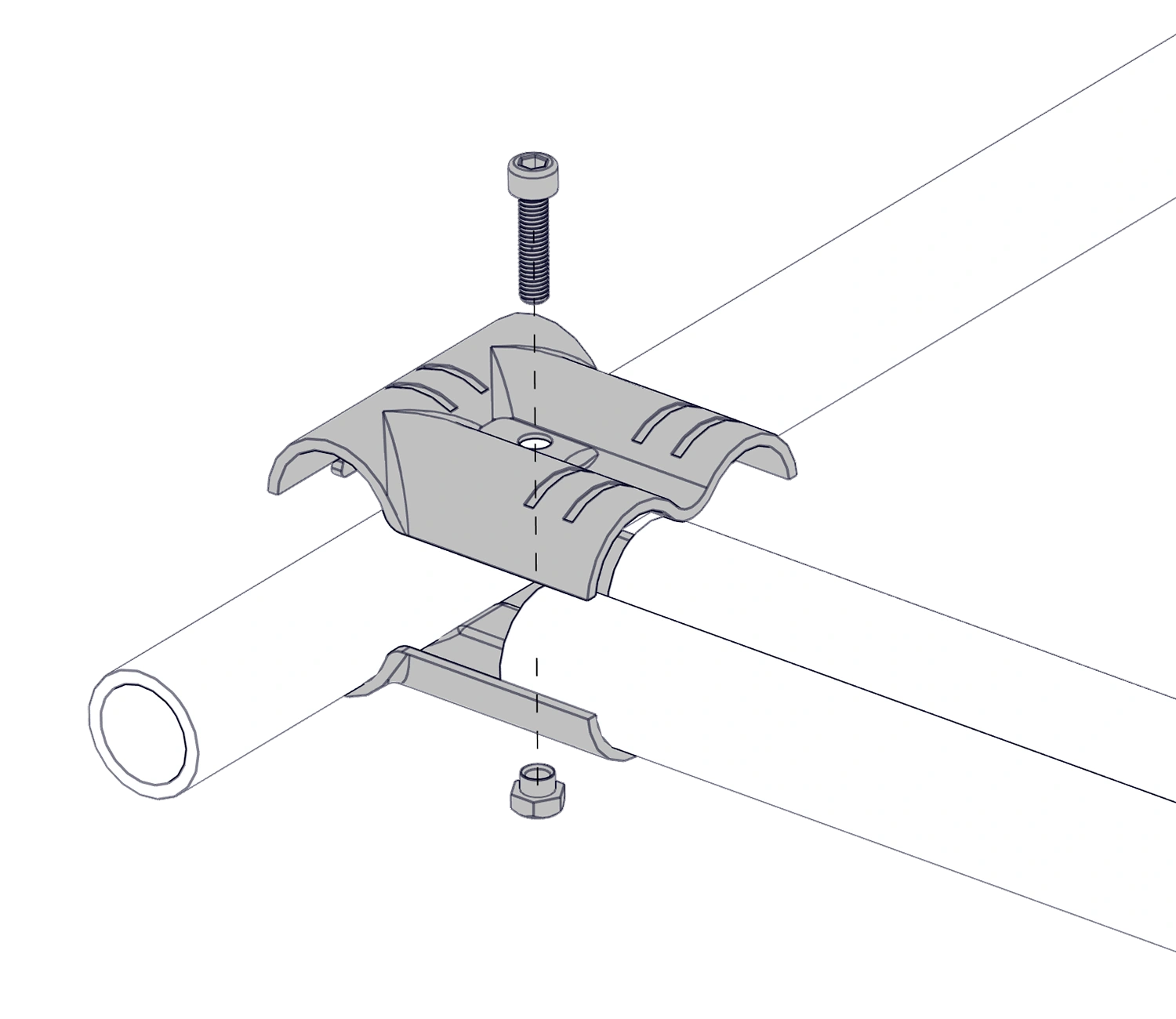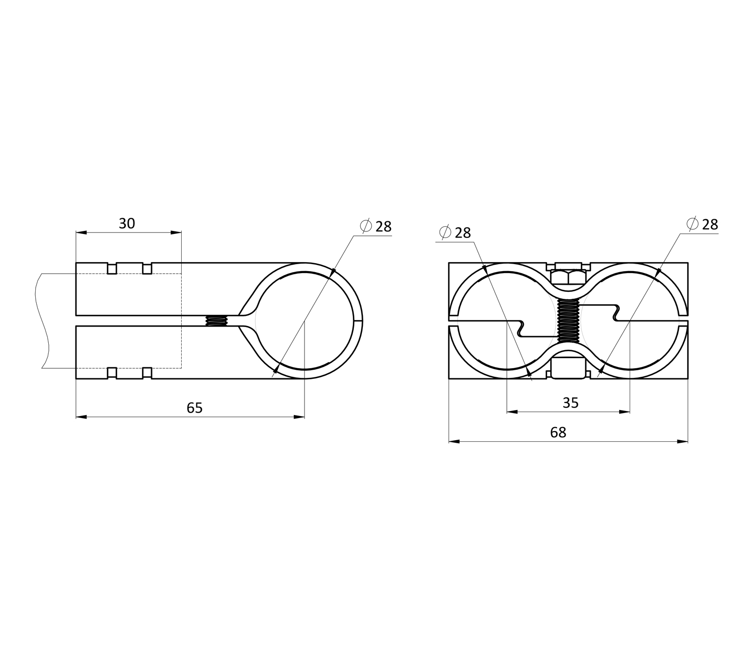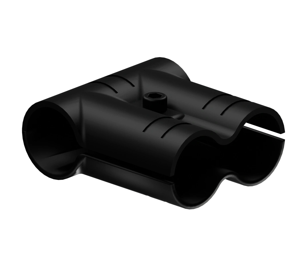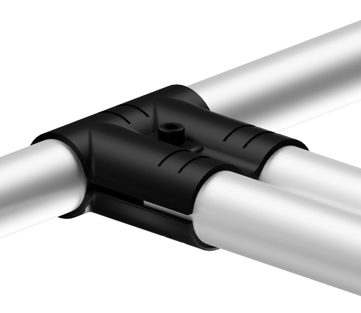 Используется совместно с алюминиевым трубным профилем D 28 мм в модульной трубной системе, которая представляет собой набор соединителей, роликовых направляющих (рольгангов) и других вспомогательных компонентов, позволяющих быстро изготовить специальные виды стационарного и мобильного оборудования и приспособлений, применимых на складе, сборочном производстве, таких как гравитационные стеллажи, тележки, рабочие столы и станции с возможностью их быстрой настройки, модификации.