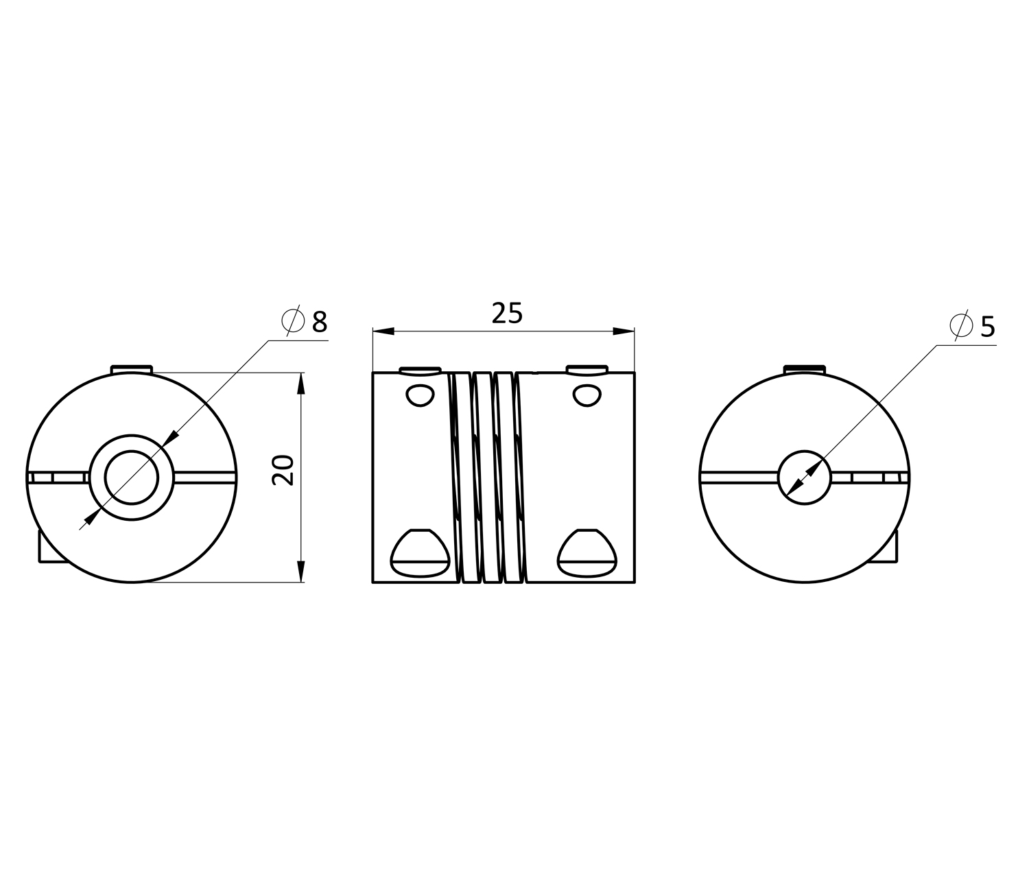 Гибкая муфта D5/D8 используется для для передачи крутящего момента от шагового двигателя к трапецеидальному винт