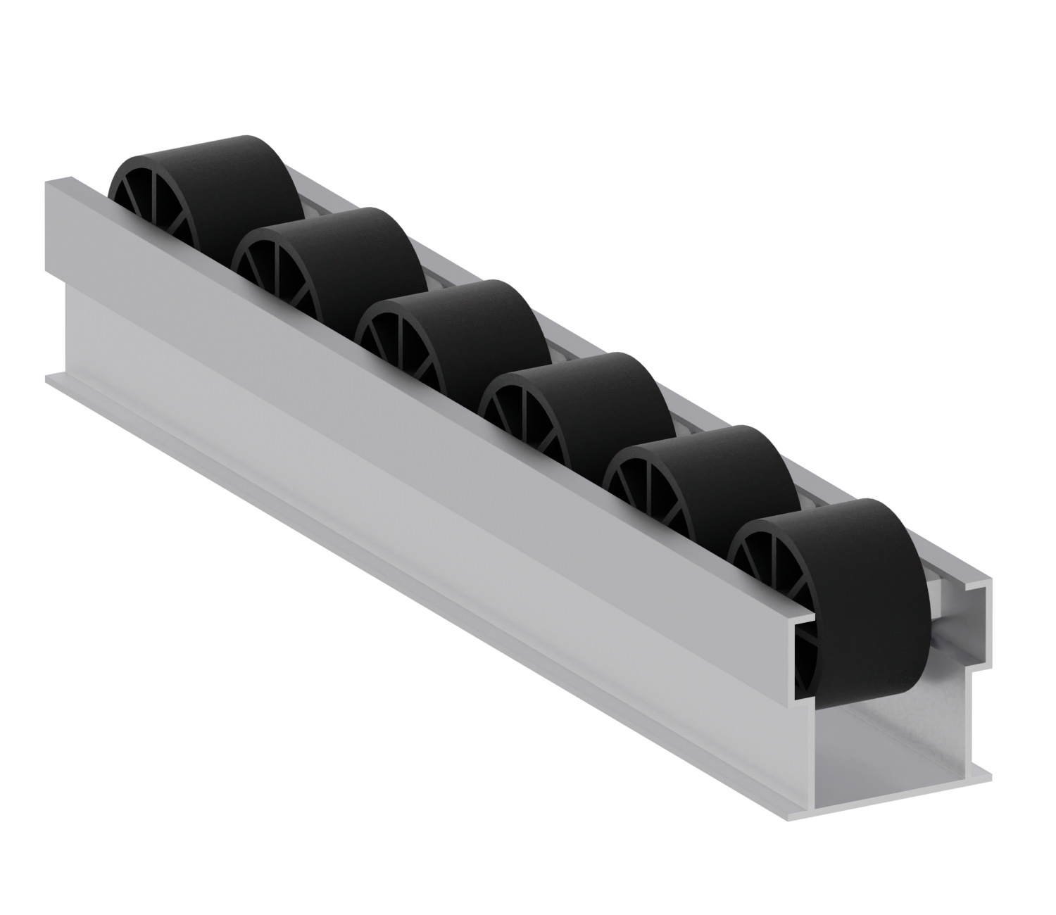 Роликовые алюминиевые направляющие для конвейеров (рольганги) — элемент линейки конвейерной фурнитуры, используемой для создания гравитационных стеллажей и прочих конструкций предназначенных для процессов внутрипроизводственной логистики. Совместим с системой конструкционных алюминиевых профилей Alumica.