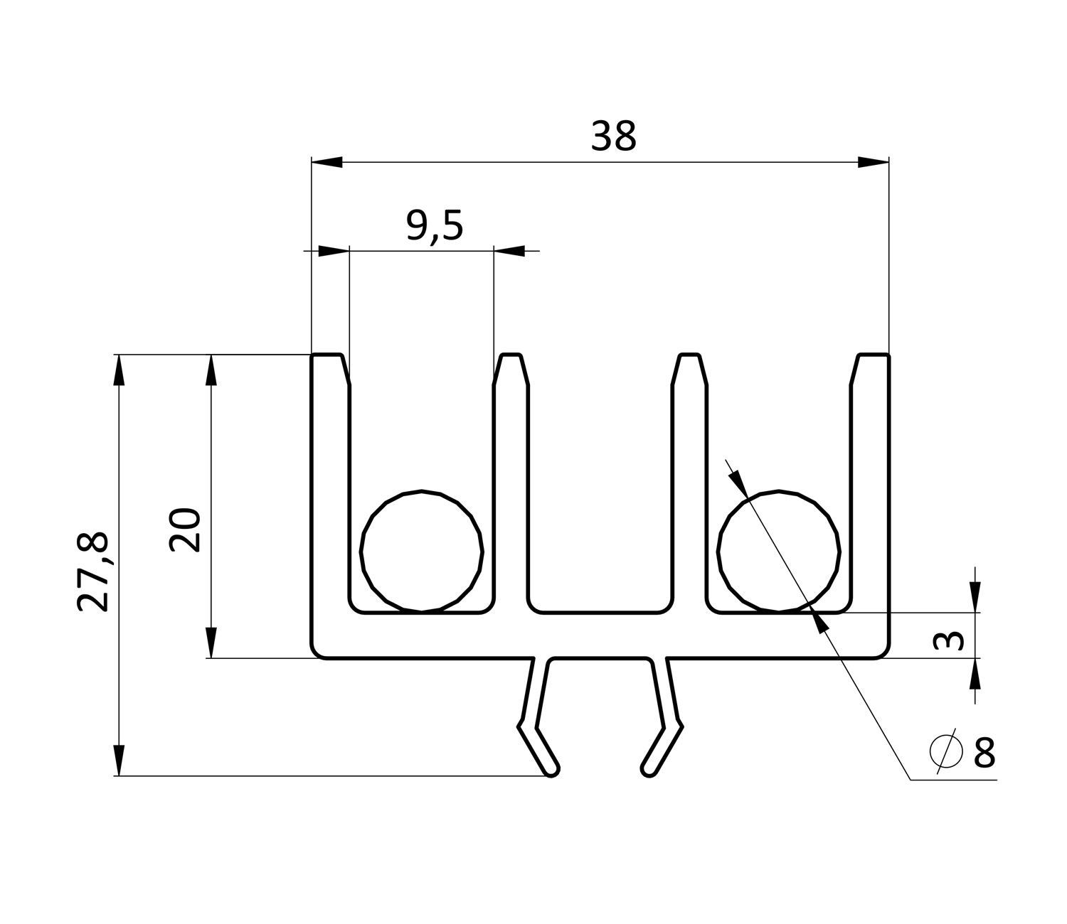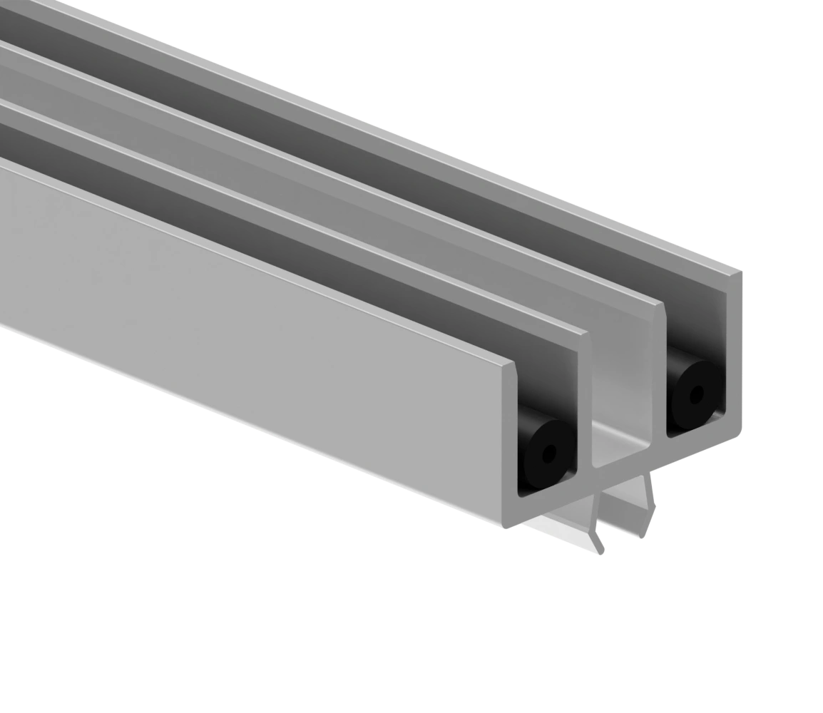 Профиль используется в изготовлении раздвижных дверей. Крепится к профилям стоек и подходят для легких раздвижных дверей.