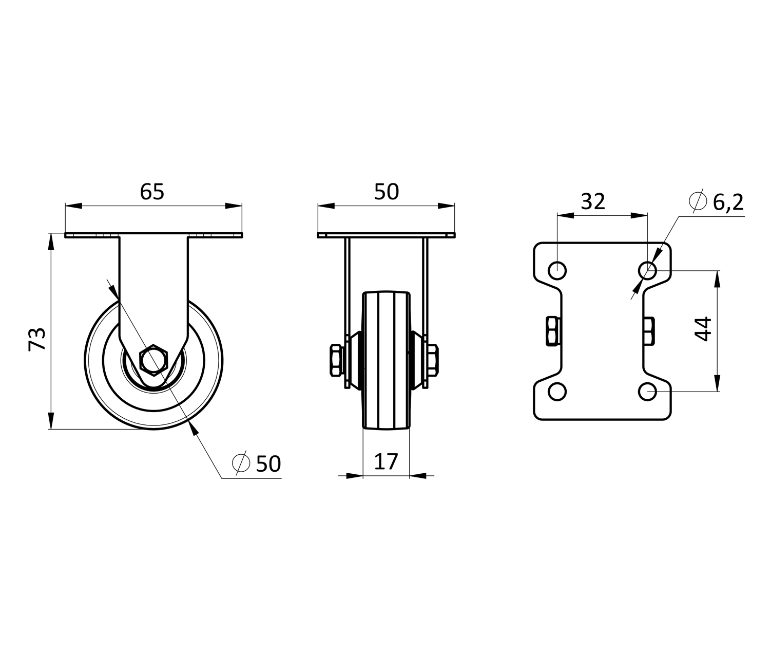 Колесо неповоротное с платформой 50 мм, сероеКолесо неповоротное с платформой 50 мм, серое