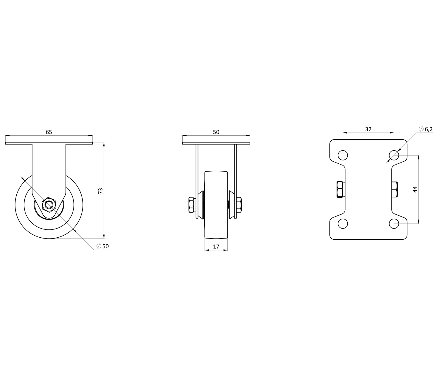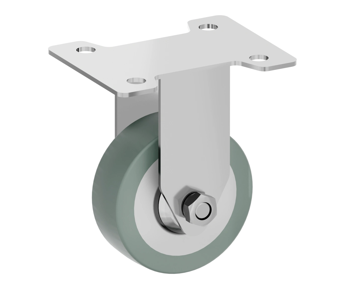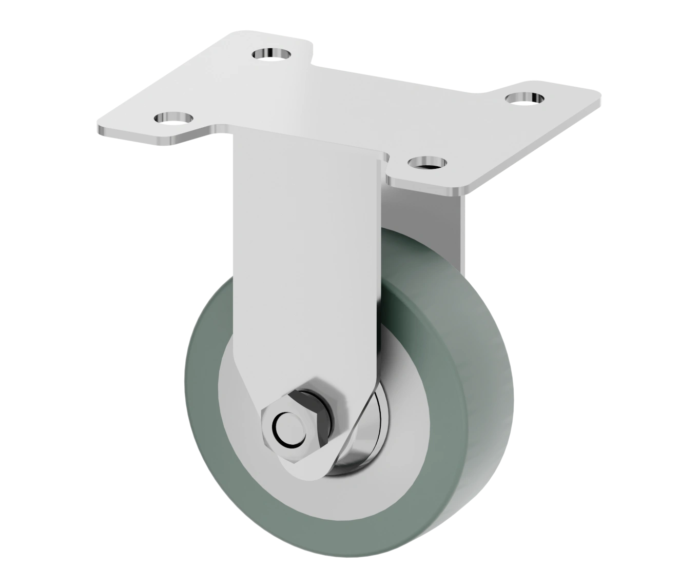 Неповоротный ролик низкой грузоподъемности с платформой. Обод ролика имеет боковые пыльники, защищающих осевой механизм. Благодаря термопластичному контактному слою, не оставляют следов на поверхности пола. Используется при производстве передвижной промышленная и рабочей мебели, медицинского оборудования и аппаратов, торгового и выставочного оборудования, стеллажей и прочих транспортных конструкций для помещений