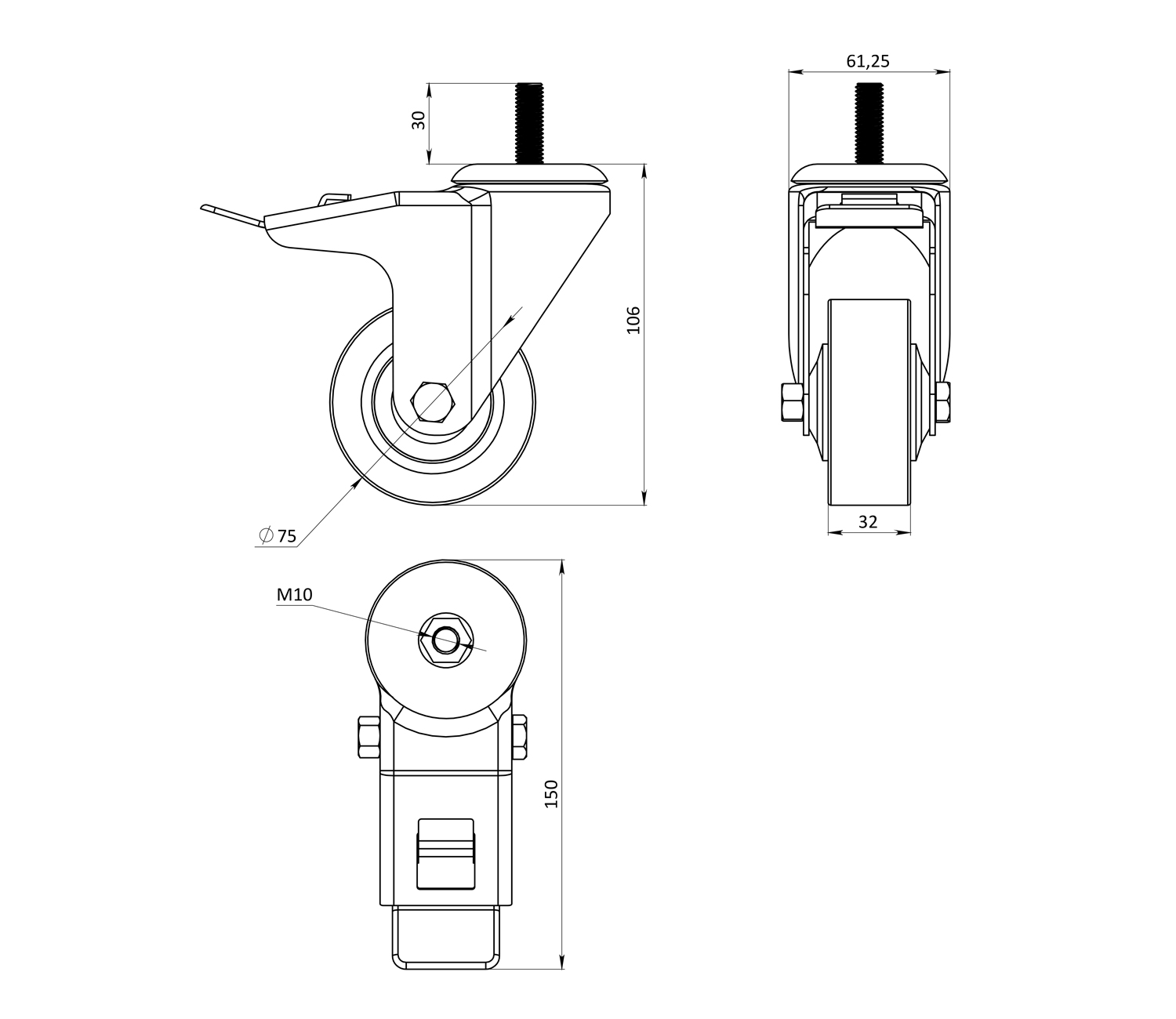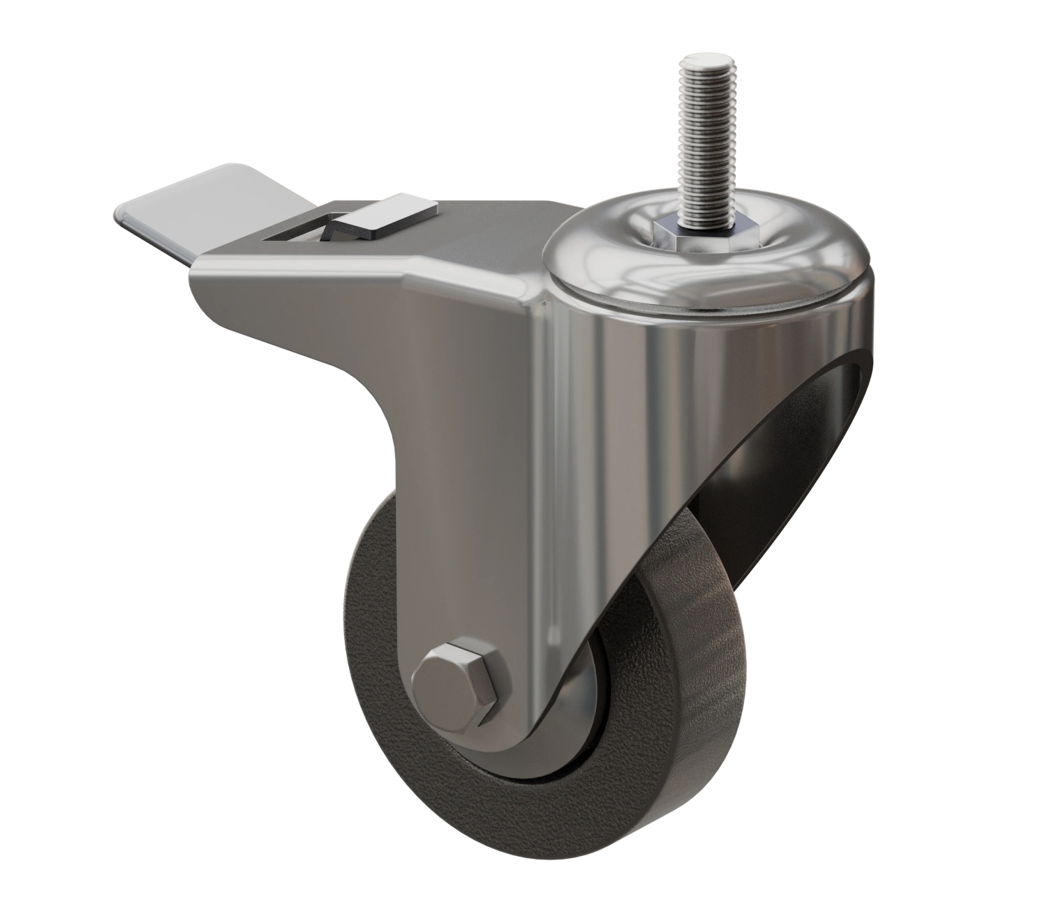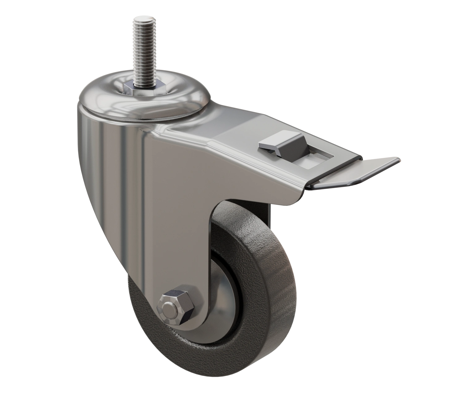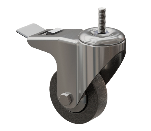 Колесо поворотное с тормозом 75 мм M10, сероеКолесо поворотное с тормозом 75 мм M10, серое