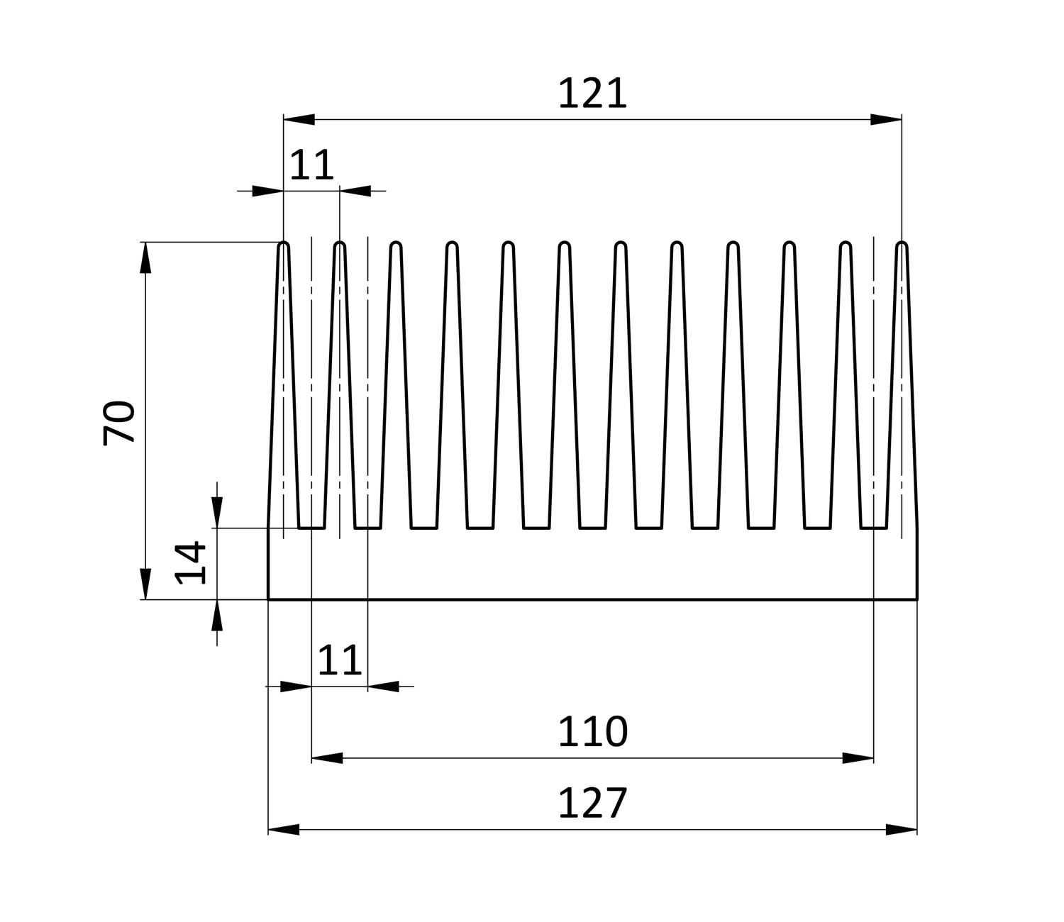 Радиаторный алюминиевый профиль 127х70 мм (4м)Радиаторный алюминиевый профиль 127х70 мм (4м)