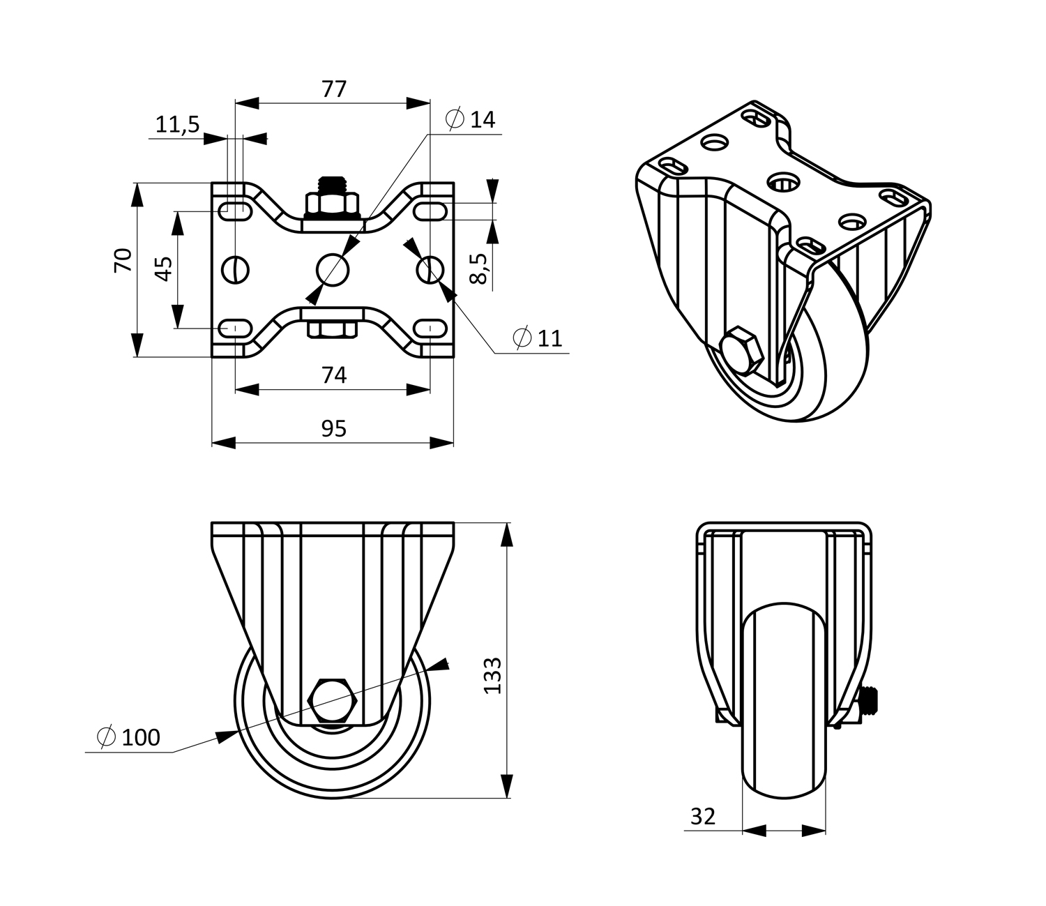 Ролик неповоротный D100Ролик неповоротный D100