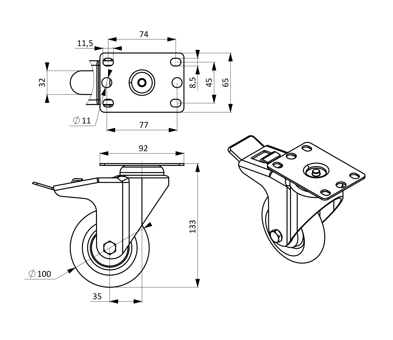 Ролик поворотный с тормозом D100Ролик поворотный с тормозом D100