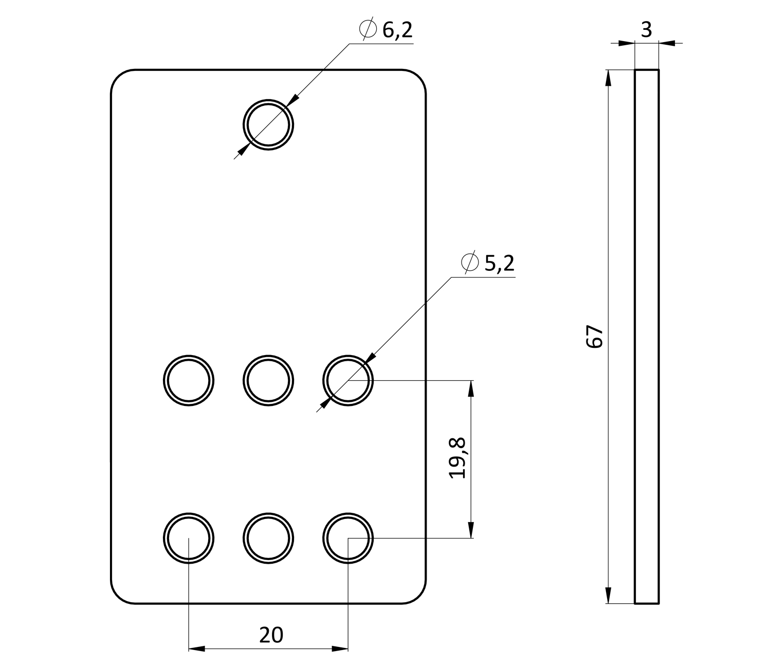 Пластина натяжного ролика 67x40Пластина натяжного ролика 67x40