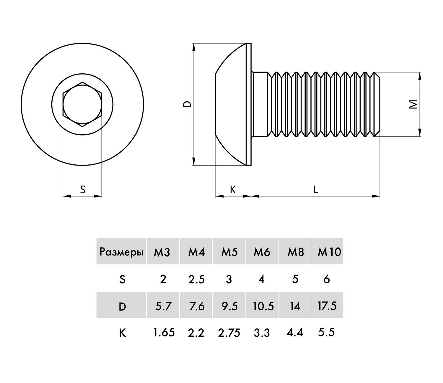 Вид головки: | полукруглая с внутренним шестигранником |