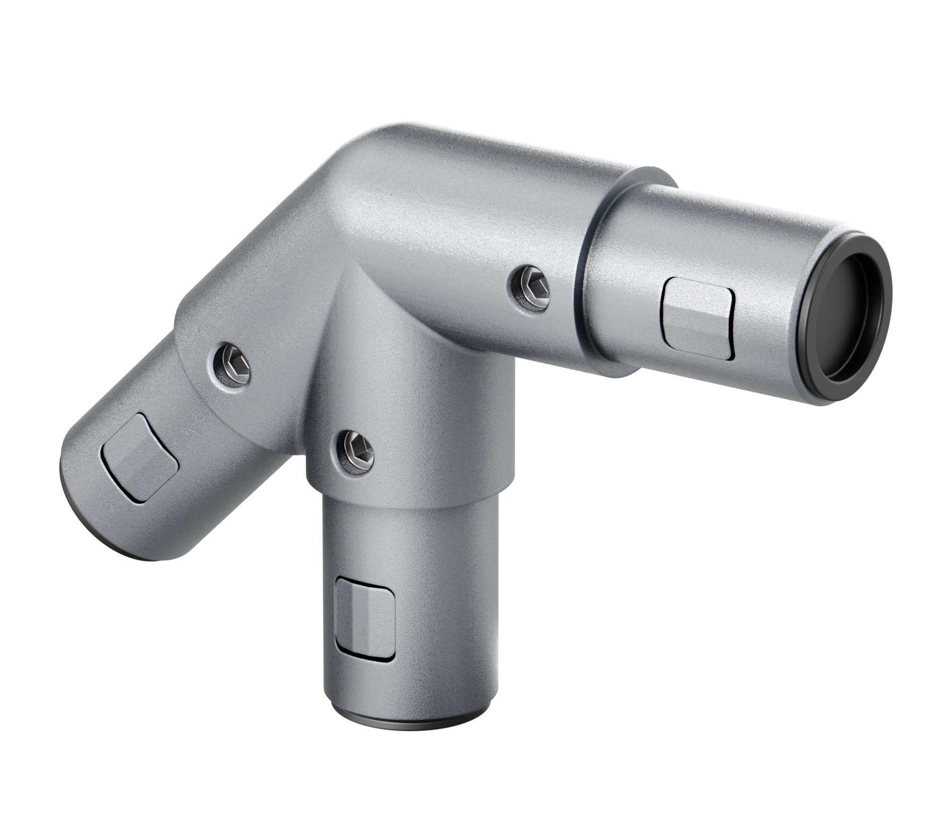 Соединяет трубный профиль с трех сторон, один угол при этом образуем соединение под 45 градусов в таких элементах лестничной конструкции как поручни, ограждения.