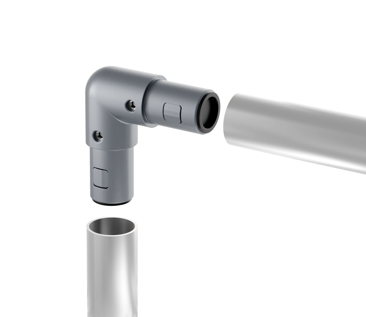 Данные соединители имеют специальную внутреннюю систему фиксации, которая фиксирует трубный профиль простым креплением - винтами без каких-либо дополнительных механических работ.