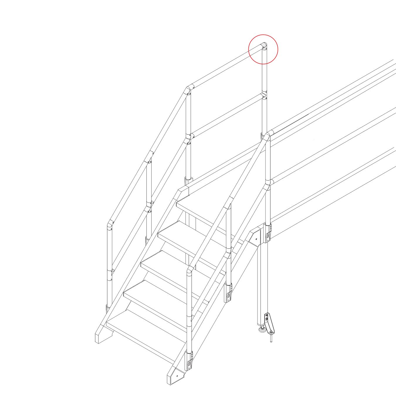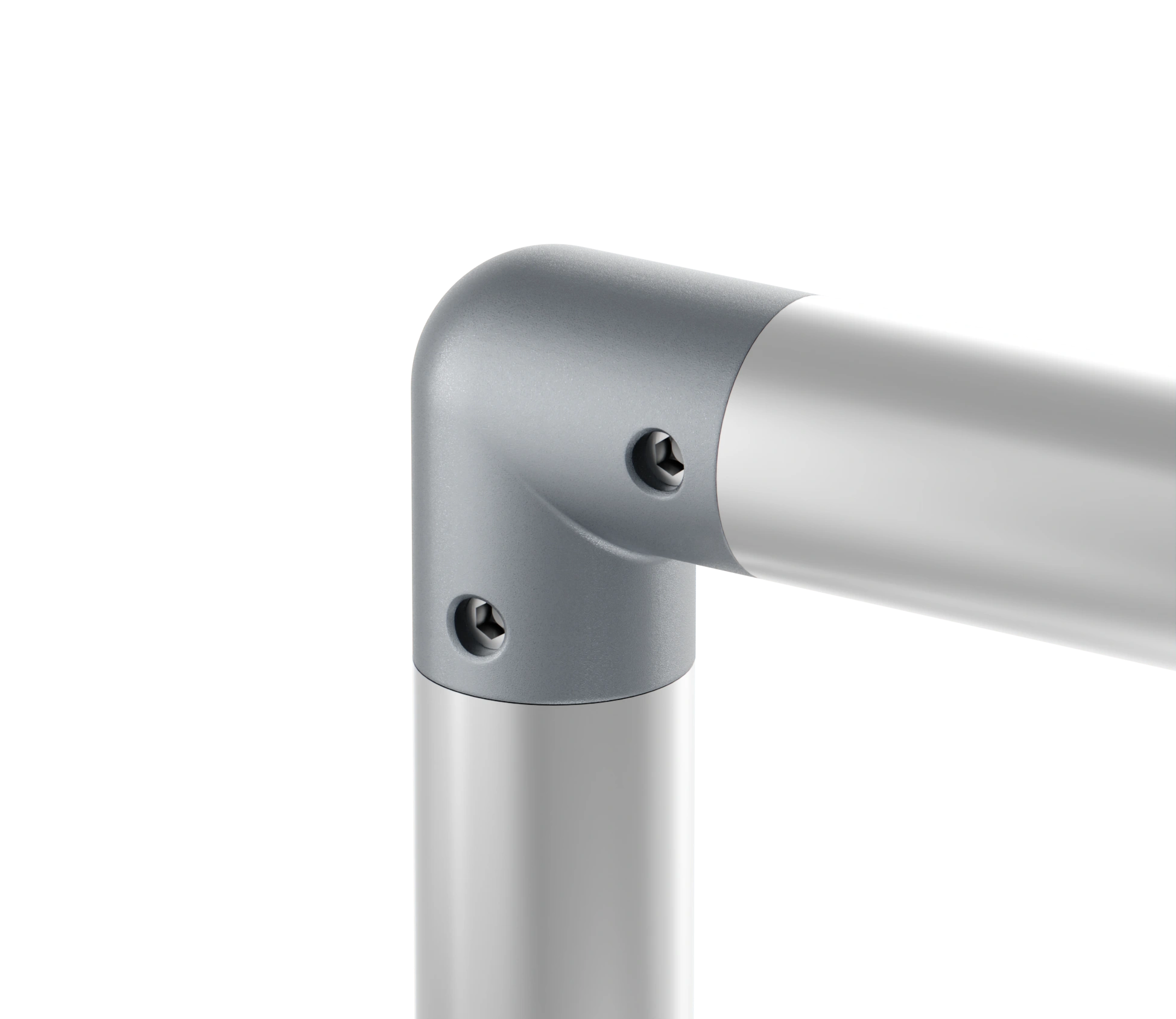 Соединяет трубный профиль с двух сторон под углом 90 градусов в таких элементах лестничной конструкции как поручни, ограждения.