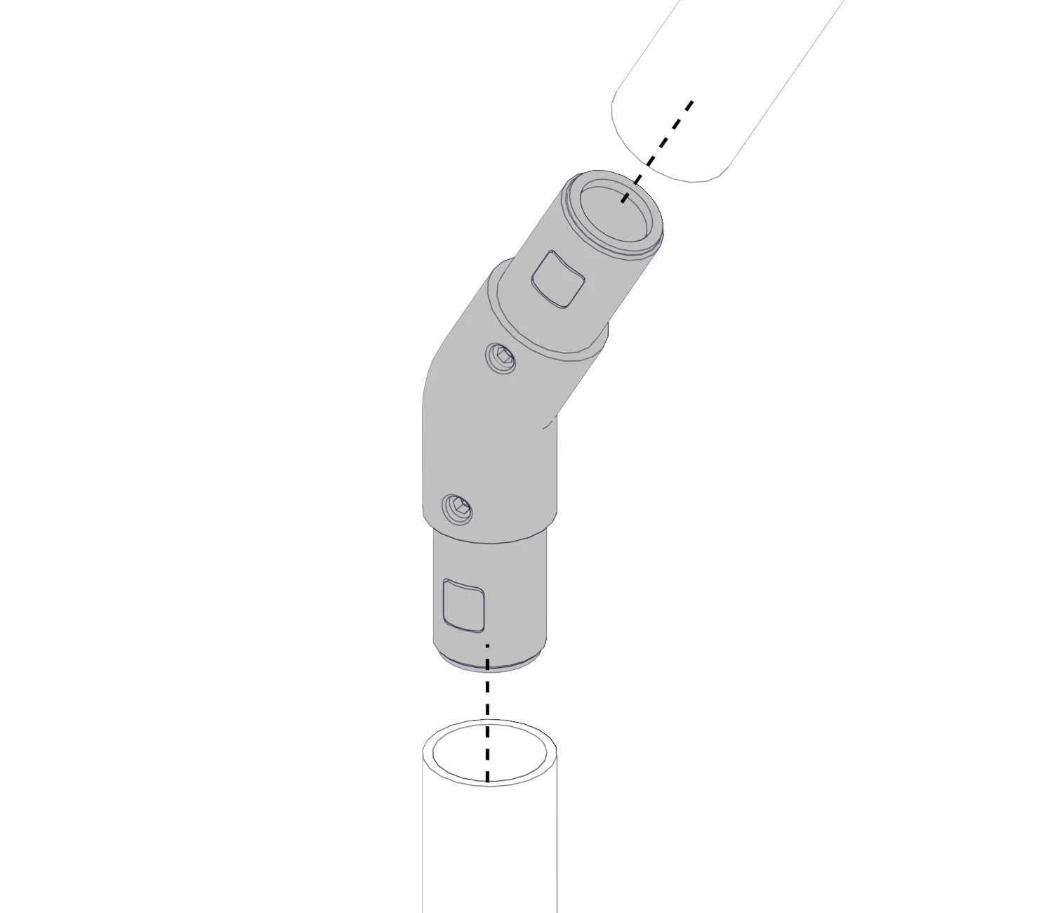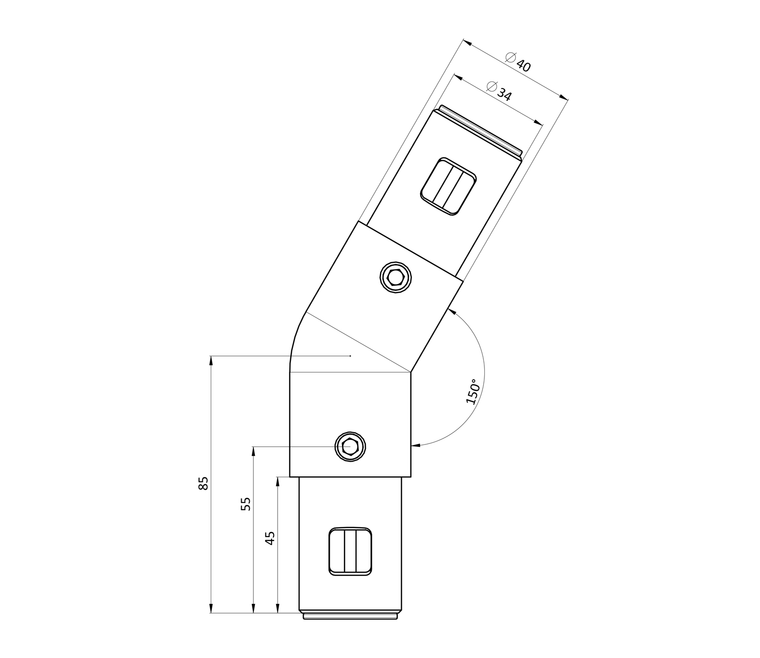Соединяет трубный профиль с двух сторон под углом 150 градусов