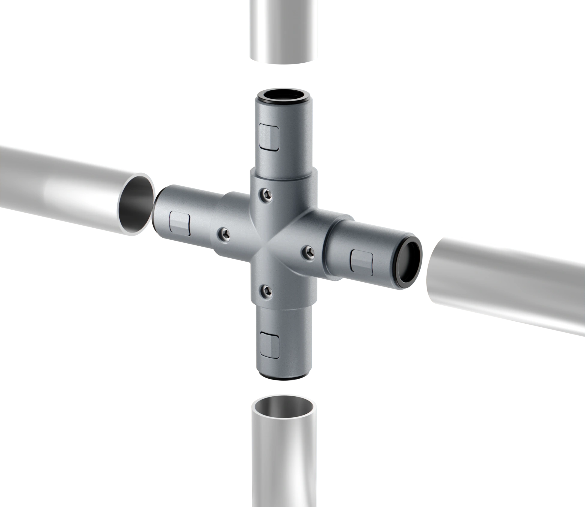 Данные соединители имеют специальную внутреннюю систему фиксации, которая фиксирует трубный профиль простым креплением - винтами без каких-либо дополнительных механических работ.