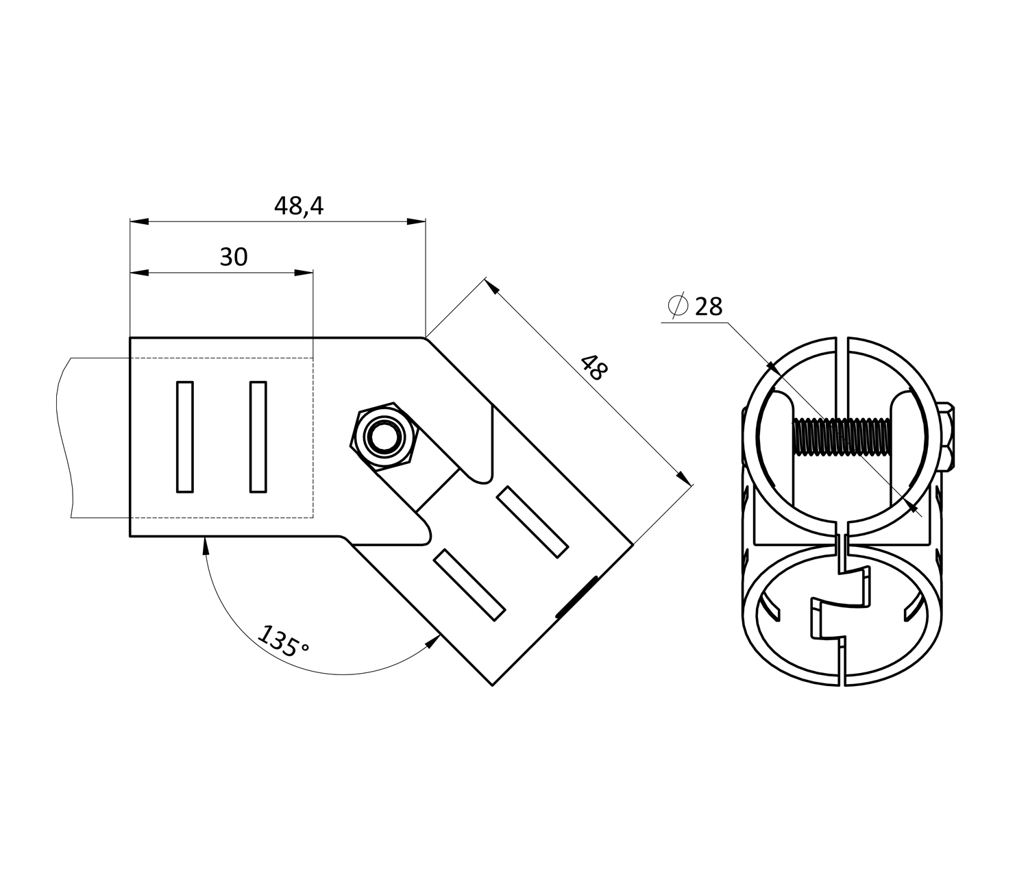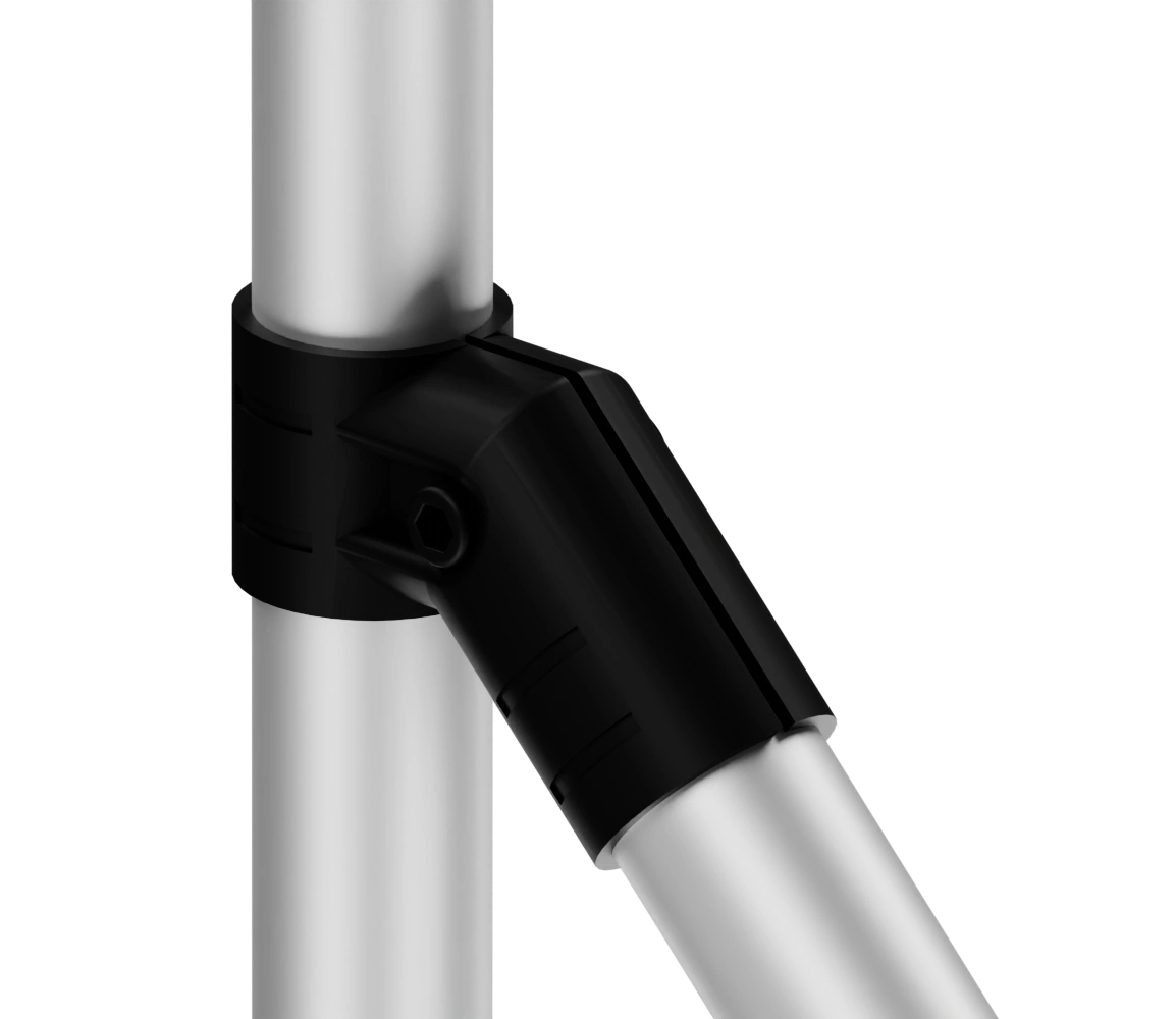 Используется совместно с алюминиевым трубным профилем D 28 мм в модульной трубной системе, которая представляет собой набор соединителей, роликовых направляющих (рольгангов) и других вспомогательных компонентов, позволяющих быстро изготовить специальные виды стационарного и мобильного оборудования и приспособлений, применимых на складе, сборочном производстве, таких как гравитационные стеллажи, тележки, рабочие столы и станции с возможностью их быстрой настройки, модификации.