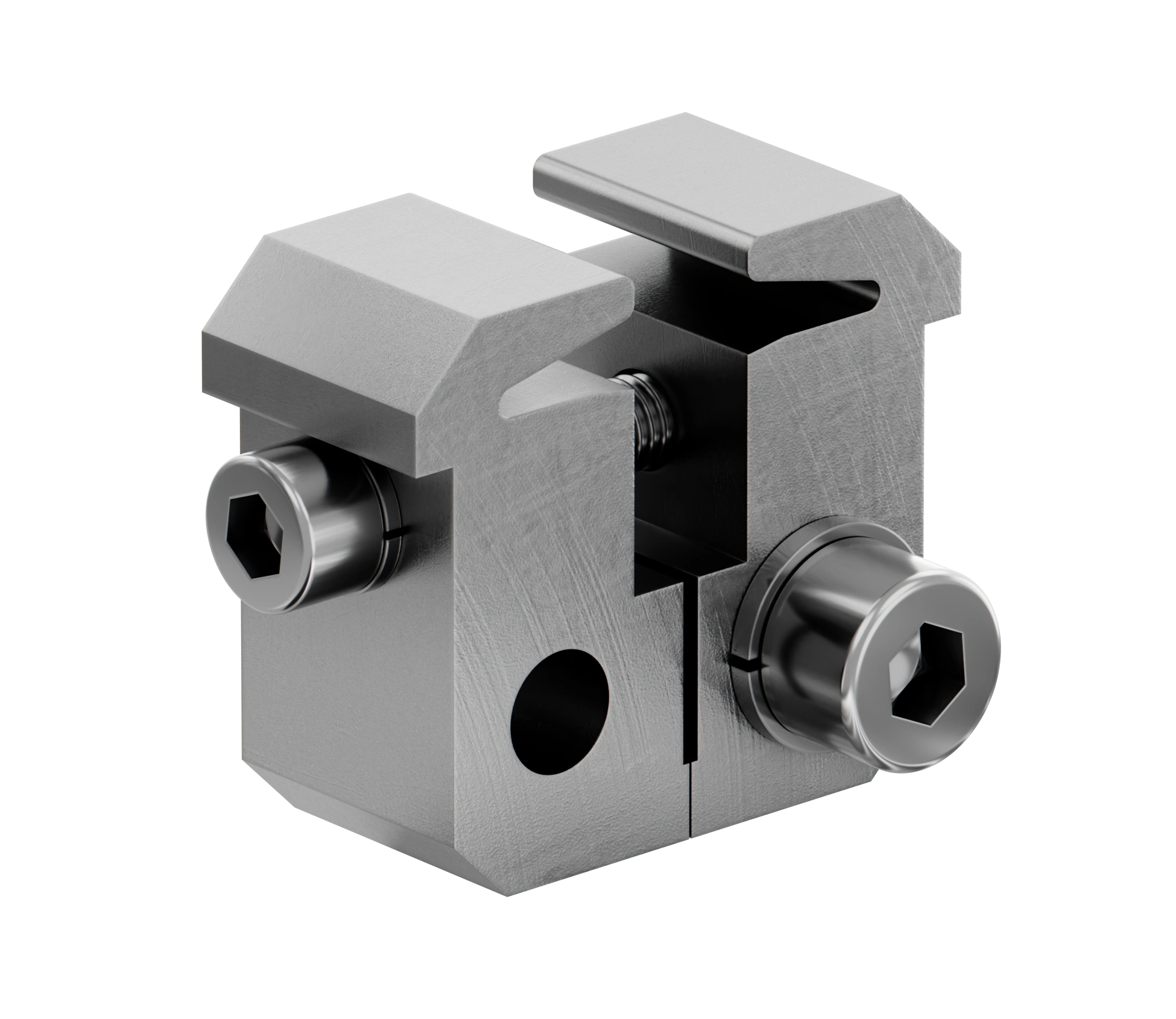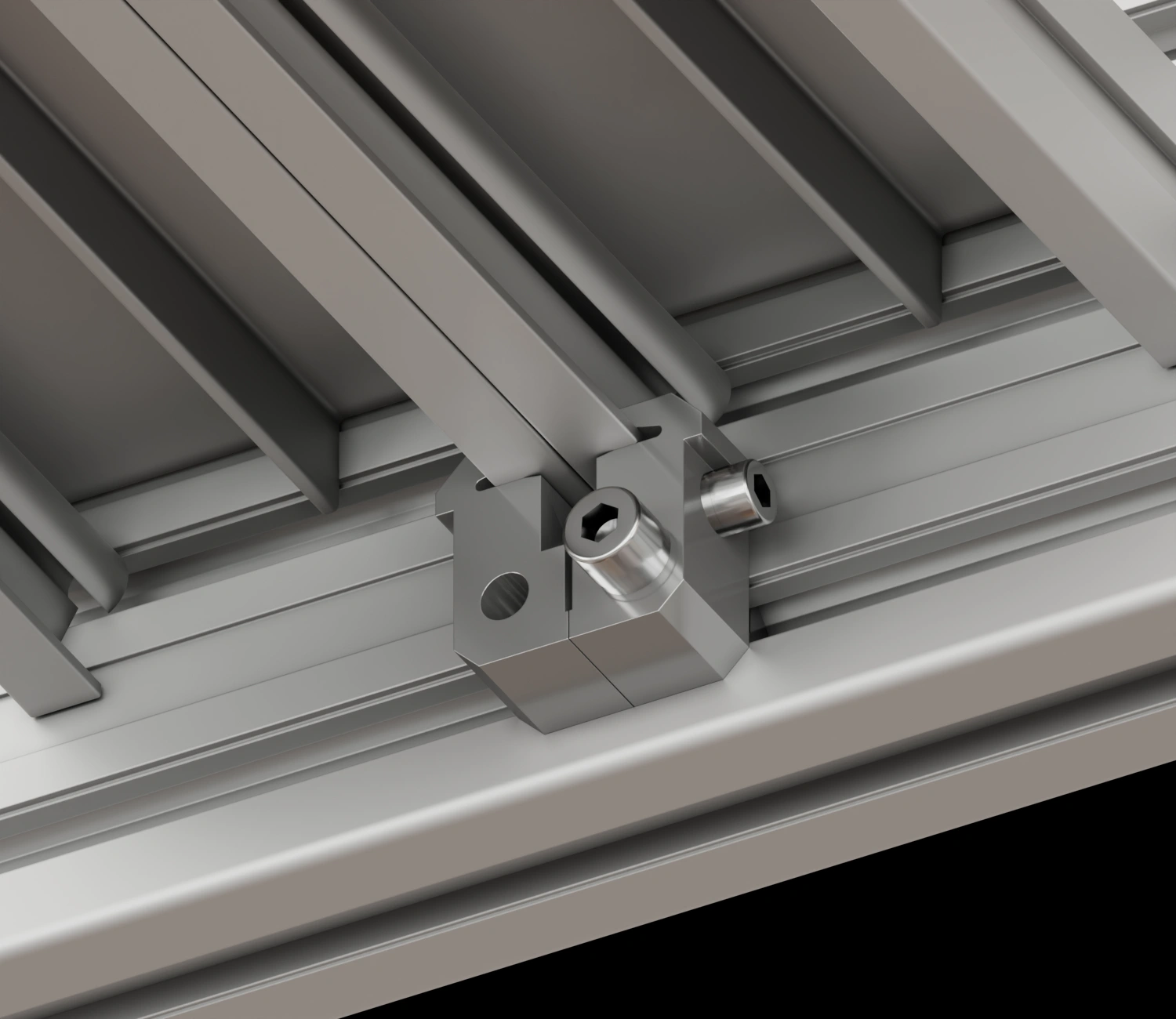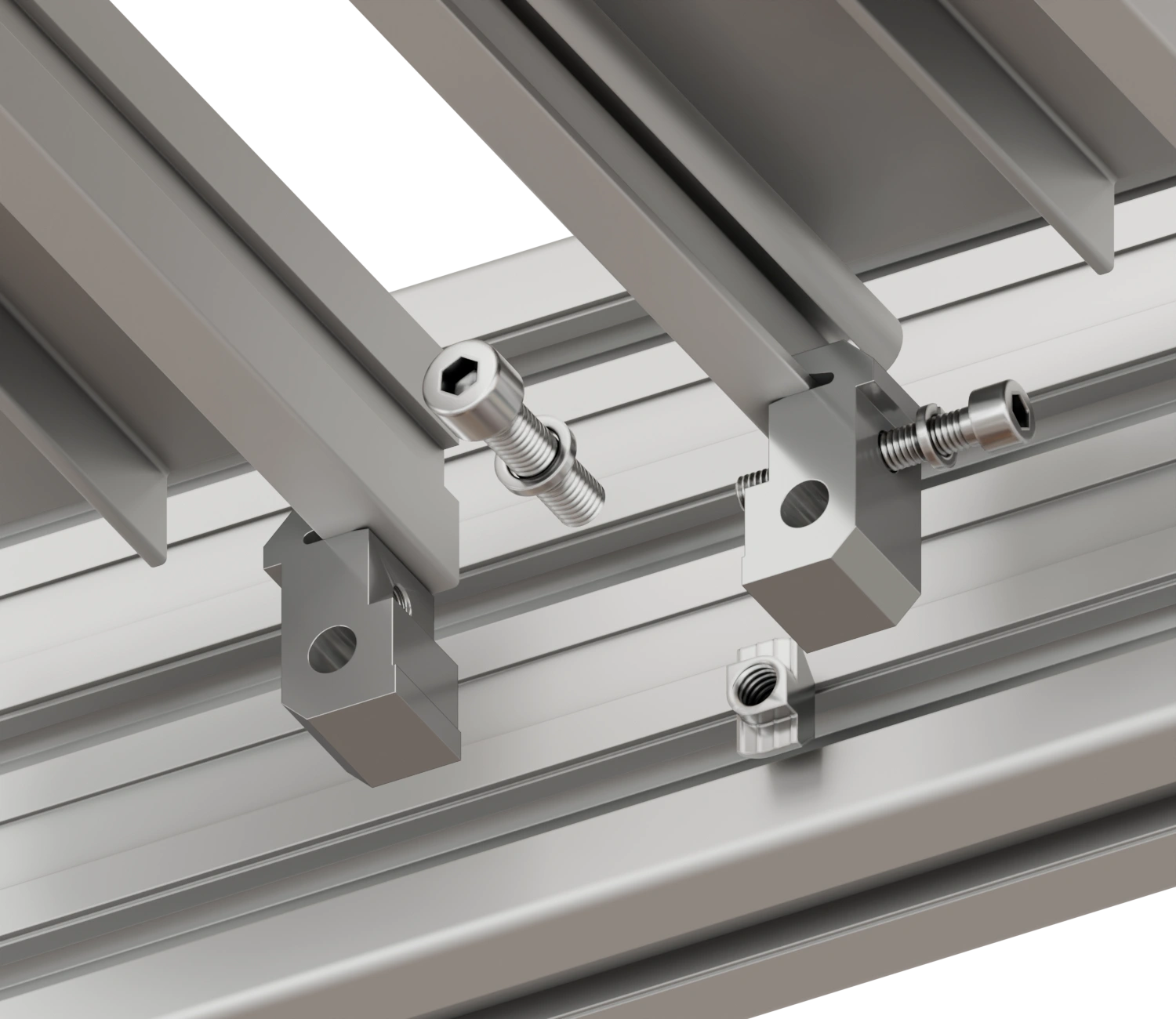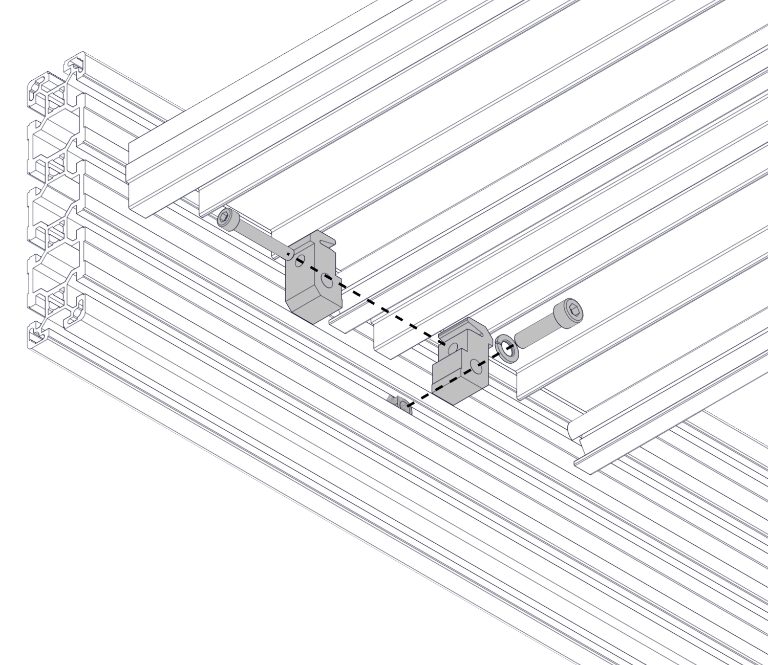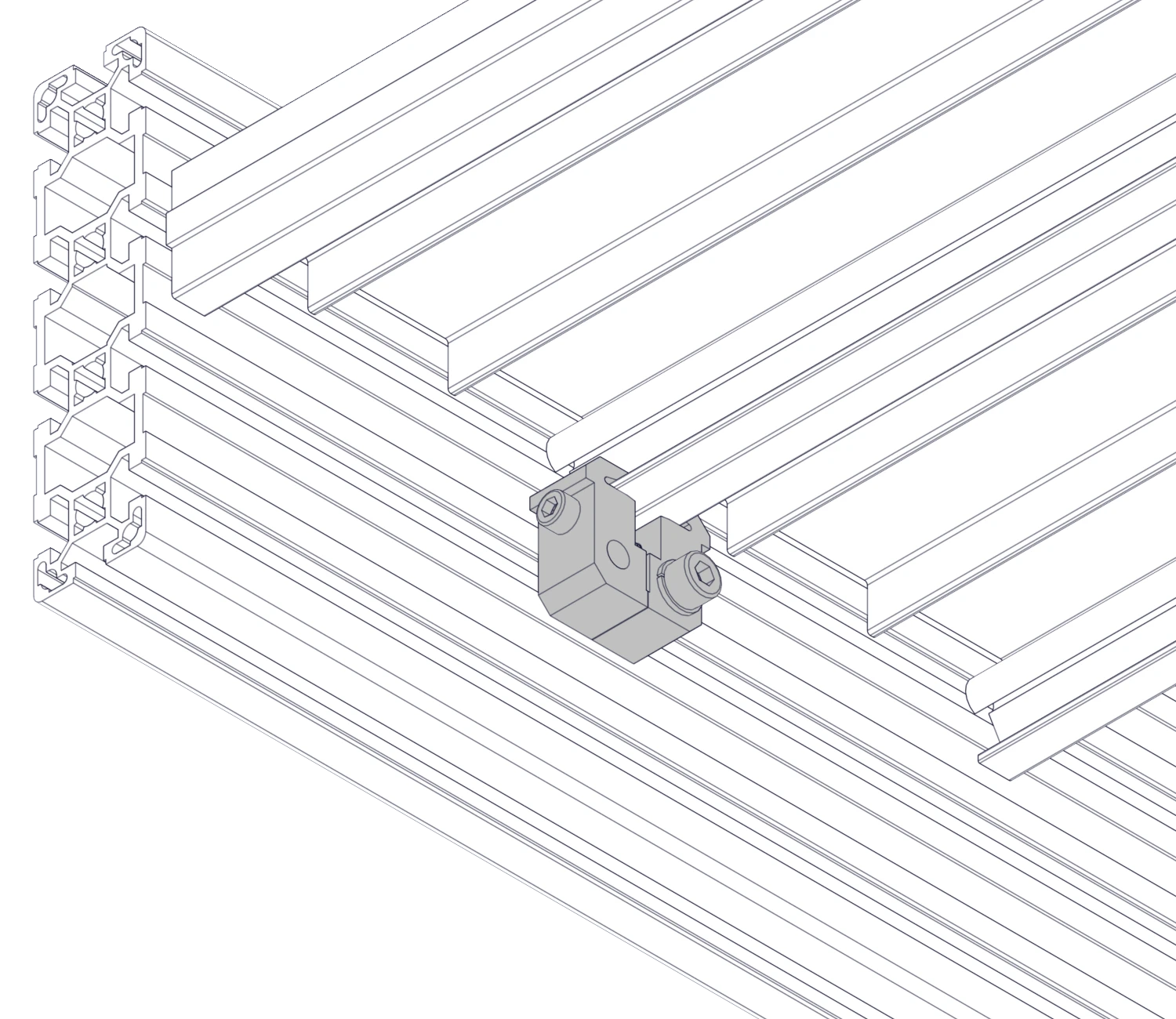 Устанавливается путем фиксации в паз профиля ступени винтом и т-гайкой. Рекомендуется установка по длине из расчета 1 зажим на 300 мм профиля