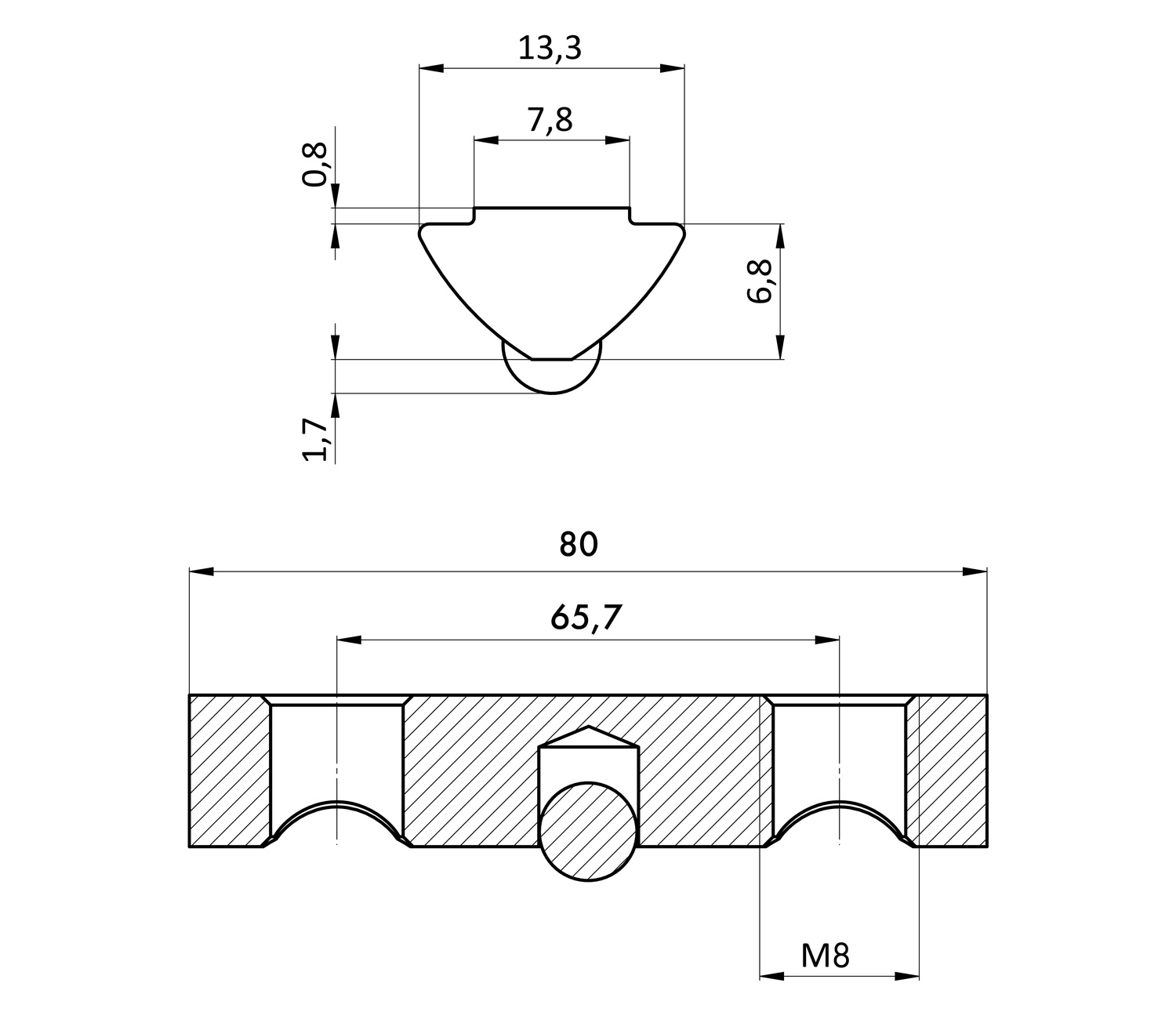 Сухарь пазовый с фиксатором паз 8, 80 мм, М8Сухарь пазовый с фиксатором паз 8, 80 мм, М8