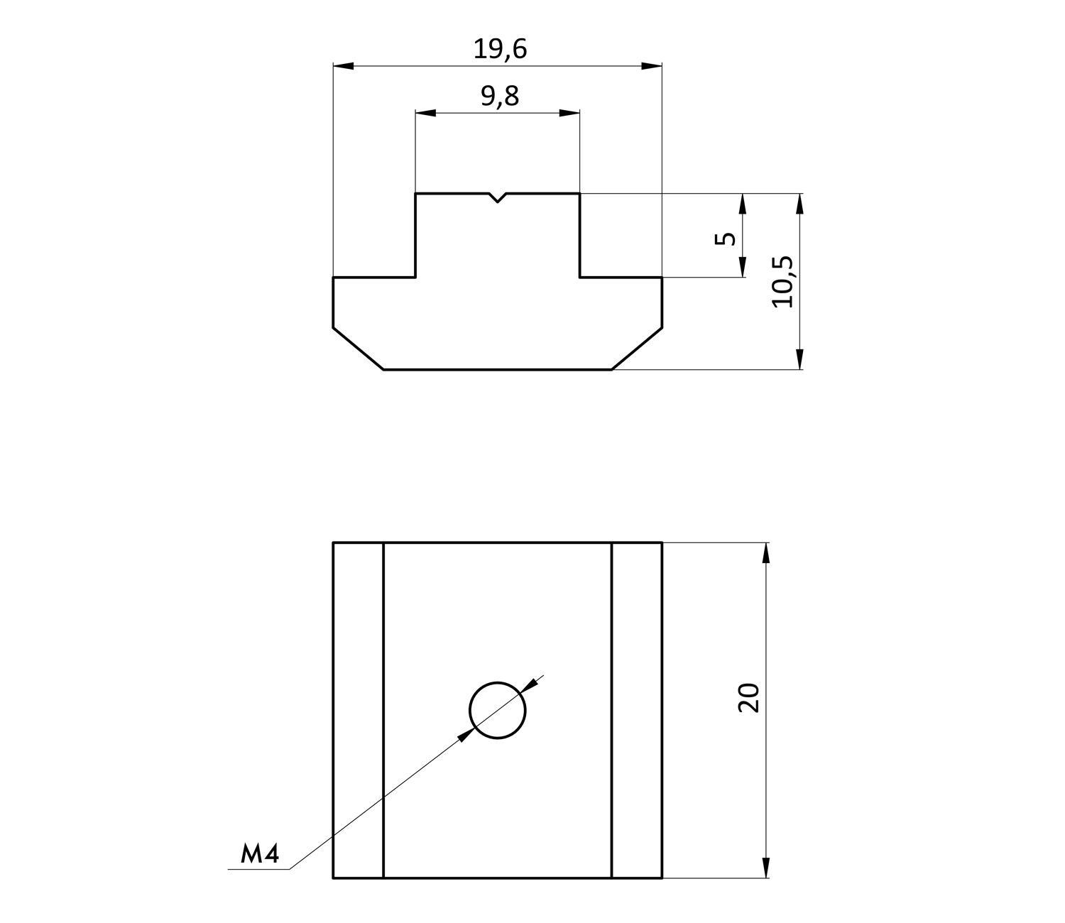 Сухарь пазовый паз 10, 20 мм, М4Сухарь пазовый паз 10, 20 мм, М4