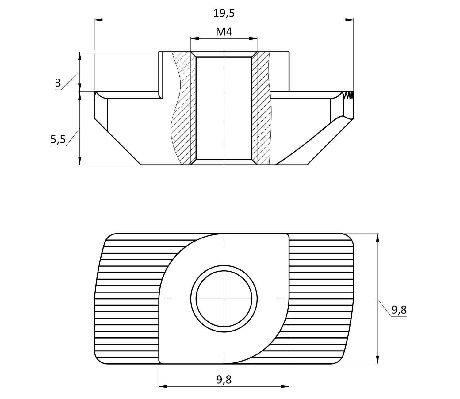 Гайка Т-образная паз 10, М4Гайка Т-образная паз 10, М4