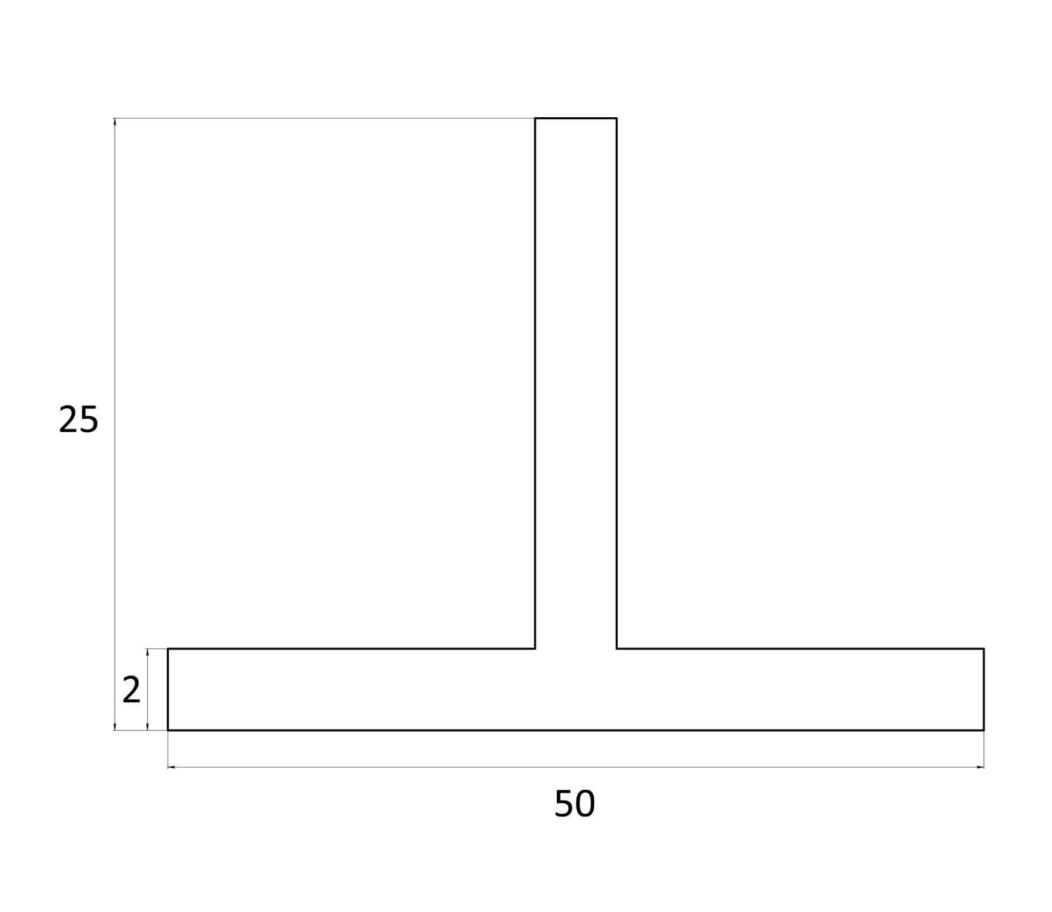 Алюминиевый тавр — Т-образный профиль 50х25х2Алюминиевый тавр — Т-образный профиль 50х25х2