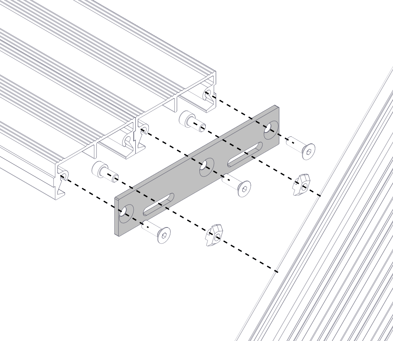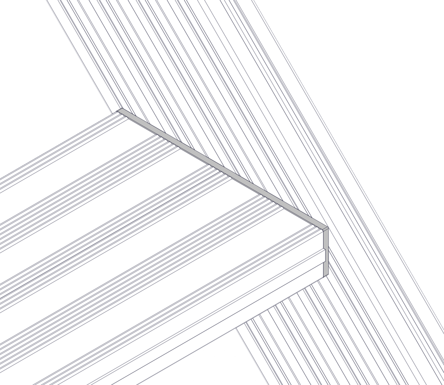 С помощью пластины путем соединения 2х профилей шириной 100 мм возможно увеличения ширины ступени до 200 мм.