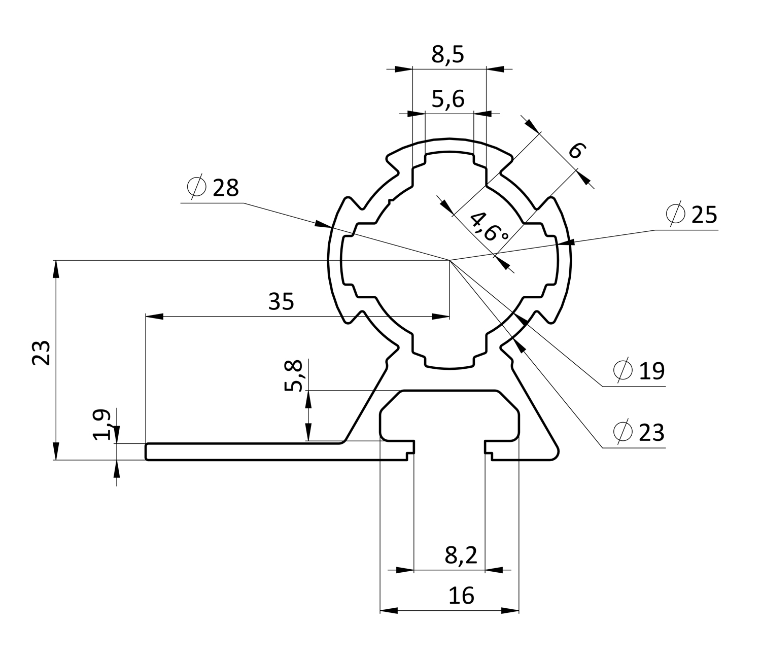 Алюминиевый трубный профиль D28 SW анодированныйАлюминиевый трубный профиль D28 SW анодированный