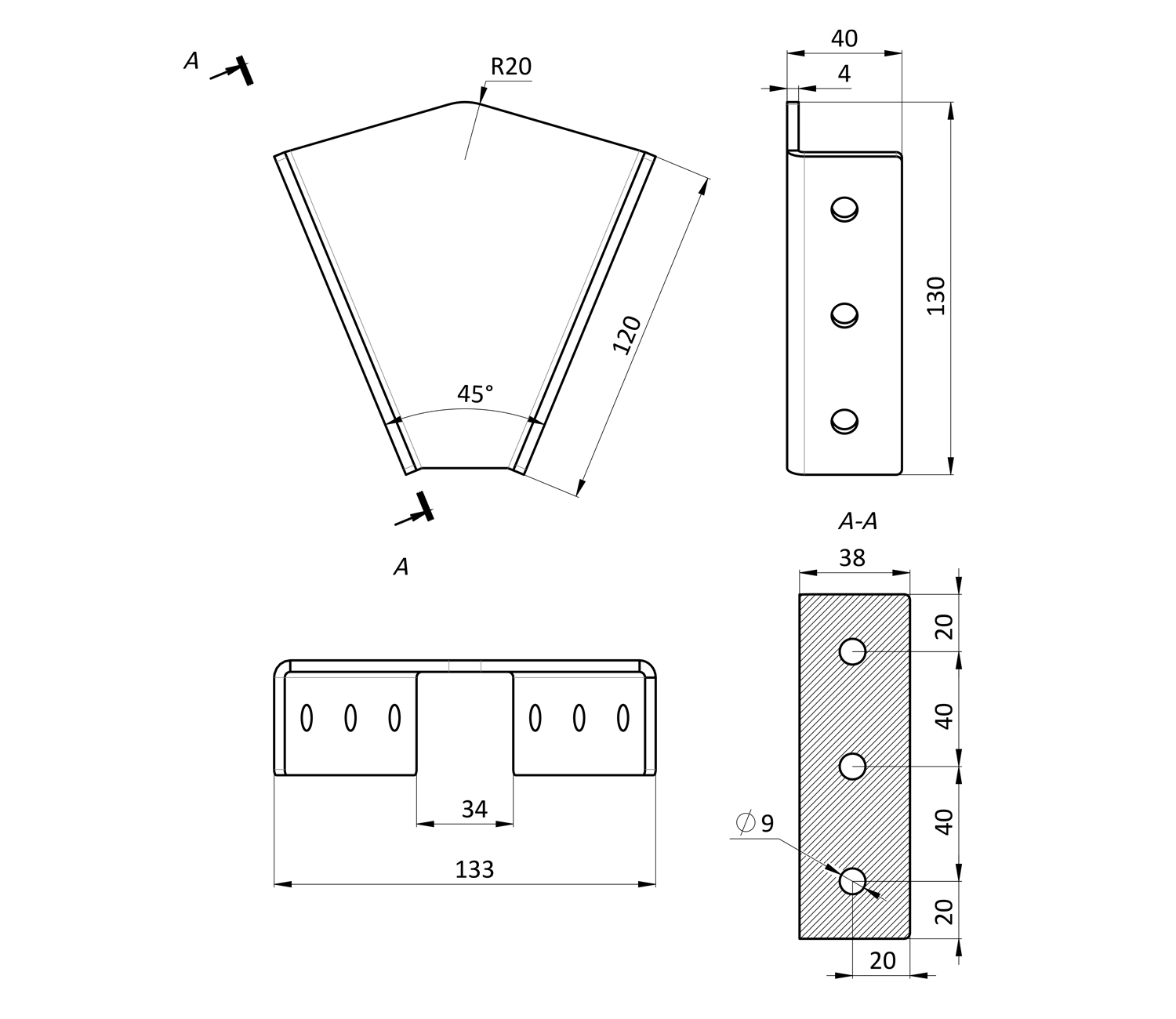 Угловой соединитель 40х120, 45 градусов, 40 серия