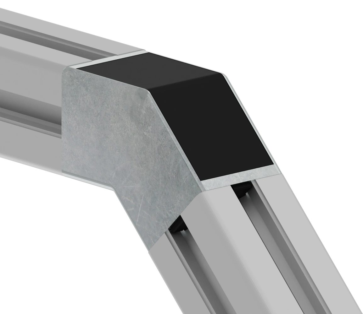 Место крепежа с внешний стороны углового соединителя эстетично скрывается заглушкой, входящей в комплект.
