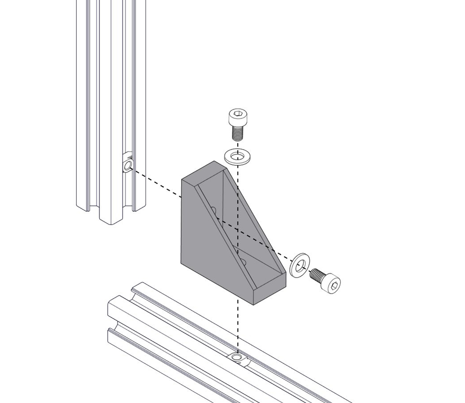 Алюминиевый уголок со специальными выступами по центру, которые являются защитой от поворота. Элемент помогает быстро и точно провести сборку конструкции. Подходит к профилю 20-й серии.