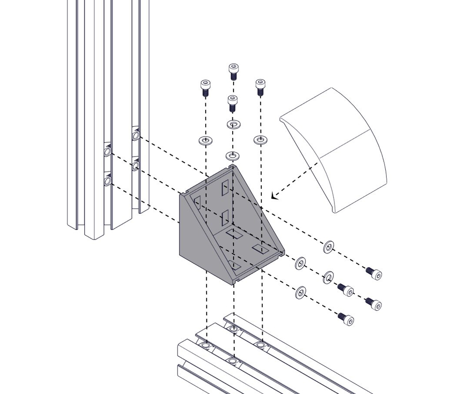 Уголки со специальными выступами по центру, которые являются защитой от поворота, помогают быстро и точно сделать сборку конструкции.