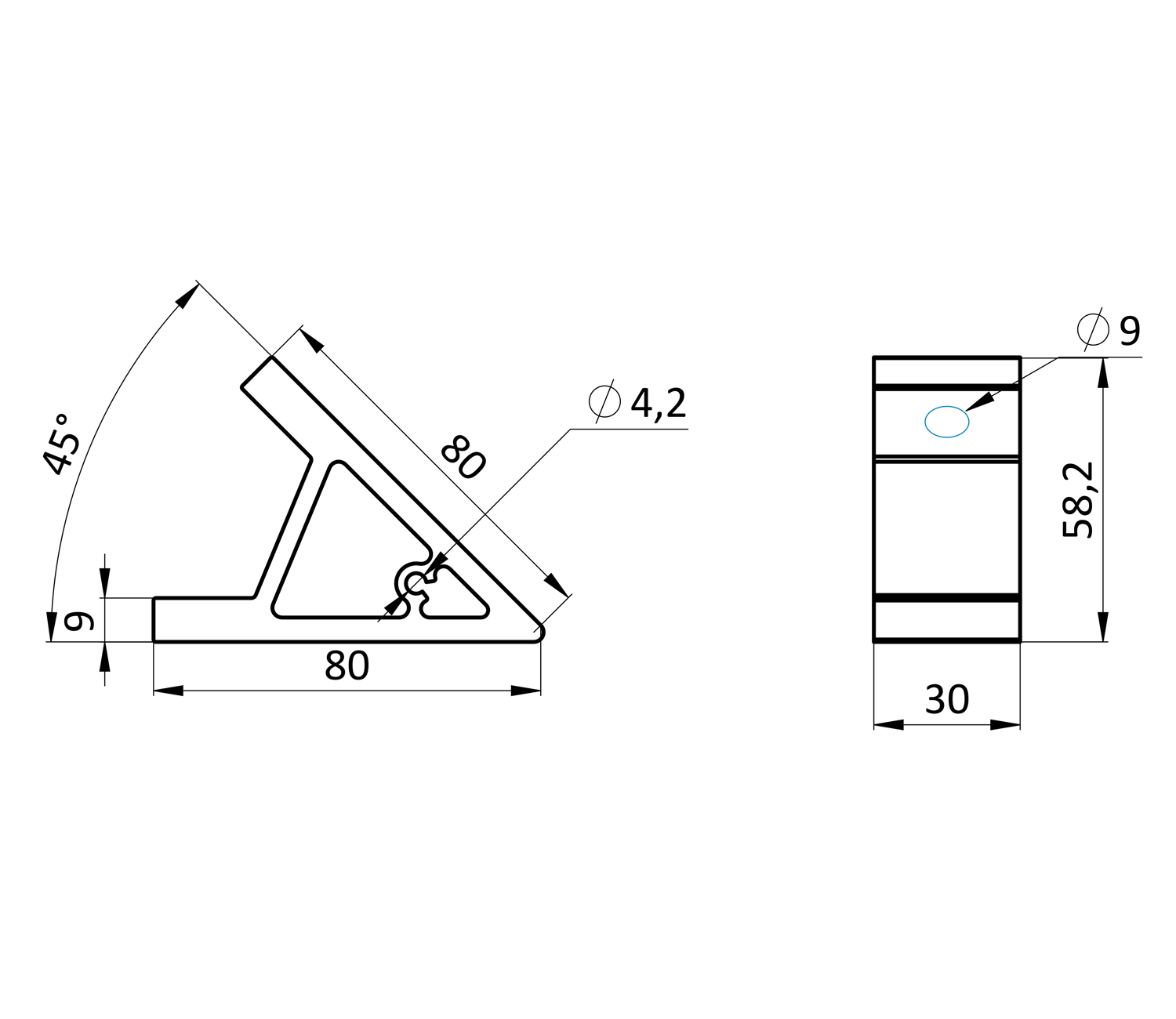 Угловой соединитель 80х80, 45 градусов, 40 серияУгловой соединитель 80х80, 45 градусов, 40 серия