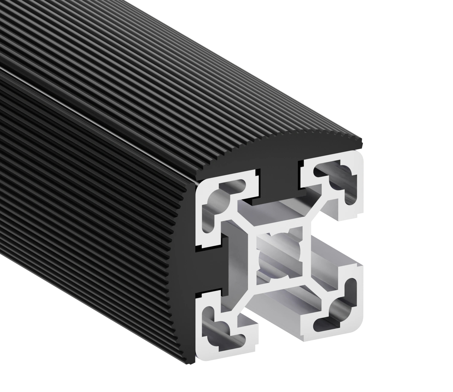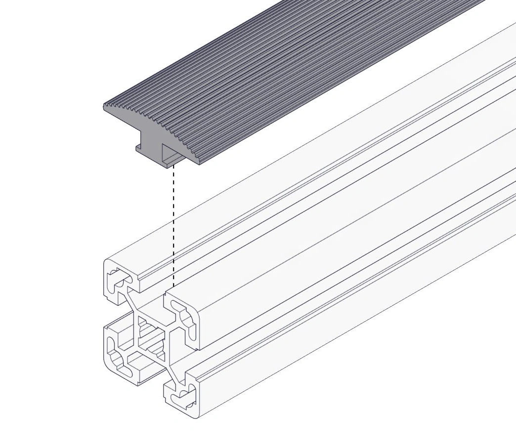 Резиновая накладка защищает стыки кромок конструкционного профиля 40-й серии, что особенно необходимо, например, при укладке восприимчивых к ударам изделий. Также накладка используется как опора для ног, чтобы защелкивать сверху и спереди поперечные распорки рабочих мест.