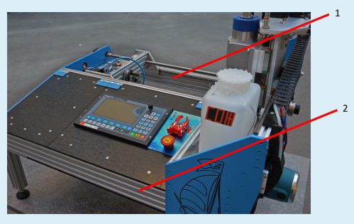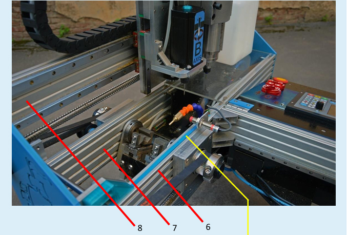 Отрезок 0,662 м - 1 шт (5) служит боковой стенкой устройство ЧПУ станка – блока электроники, обеспечивающим питание рабочих органов станка и управлении ими. Также на пазах данного отрезка закреплена левая рельсовая направляющая оси X. Сам же профиль с передней стороны лежит на отрезке (3), а с обратной соединен с отрезком (6) через сухари М4 и угловых соединителей 20x40, 20 серия, тип 2.